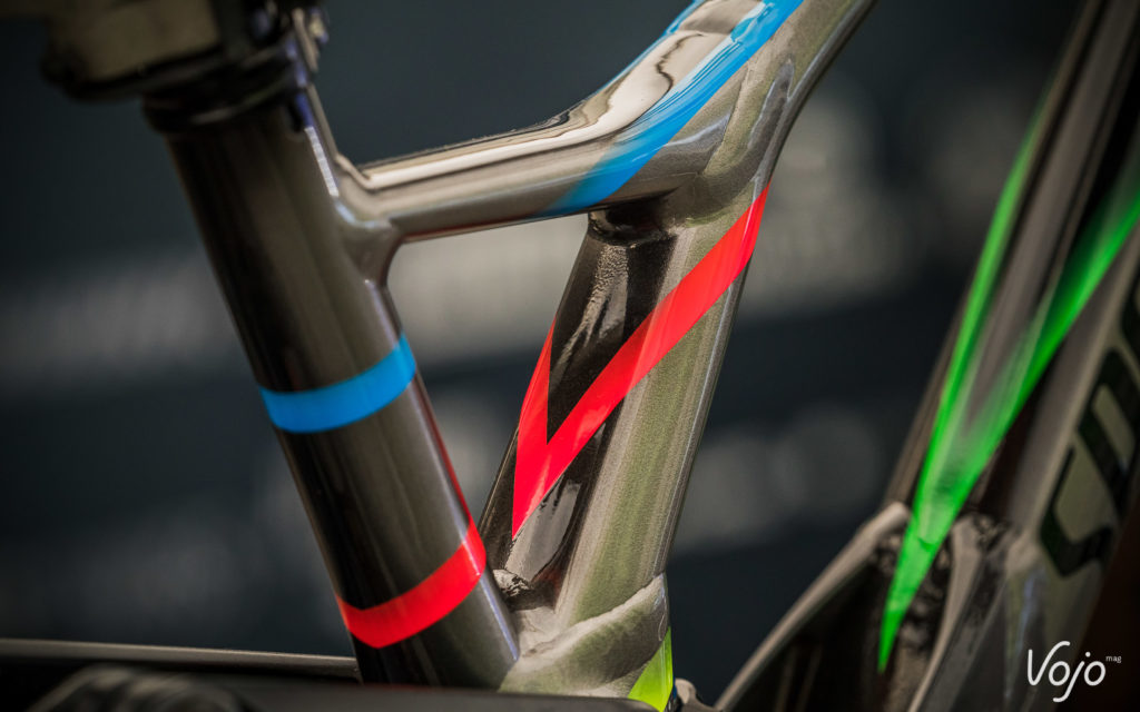 Pour tout vous dire, on s’attendait à ce que la version définitive du vélo soit présentée avant ce début de saison, mais un événement a visiblement bouleversé la donne : l’adoption par les pilotes maison du « reverse mullet », à savoir une petite roue derrière et une grande devant. Après la percée du 29″ en 2018, il semble que l’hybridation soit LA tendance 2019.
