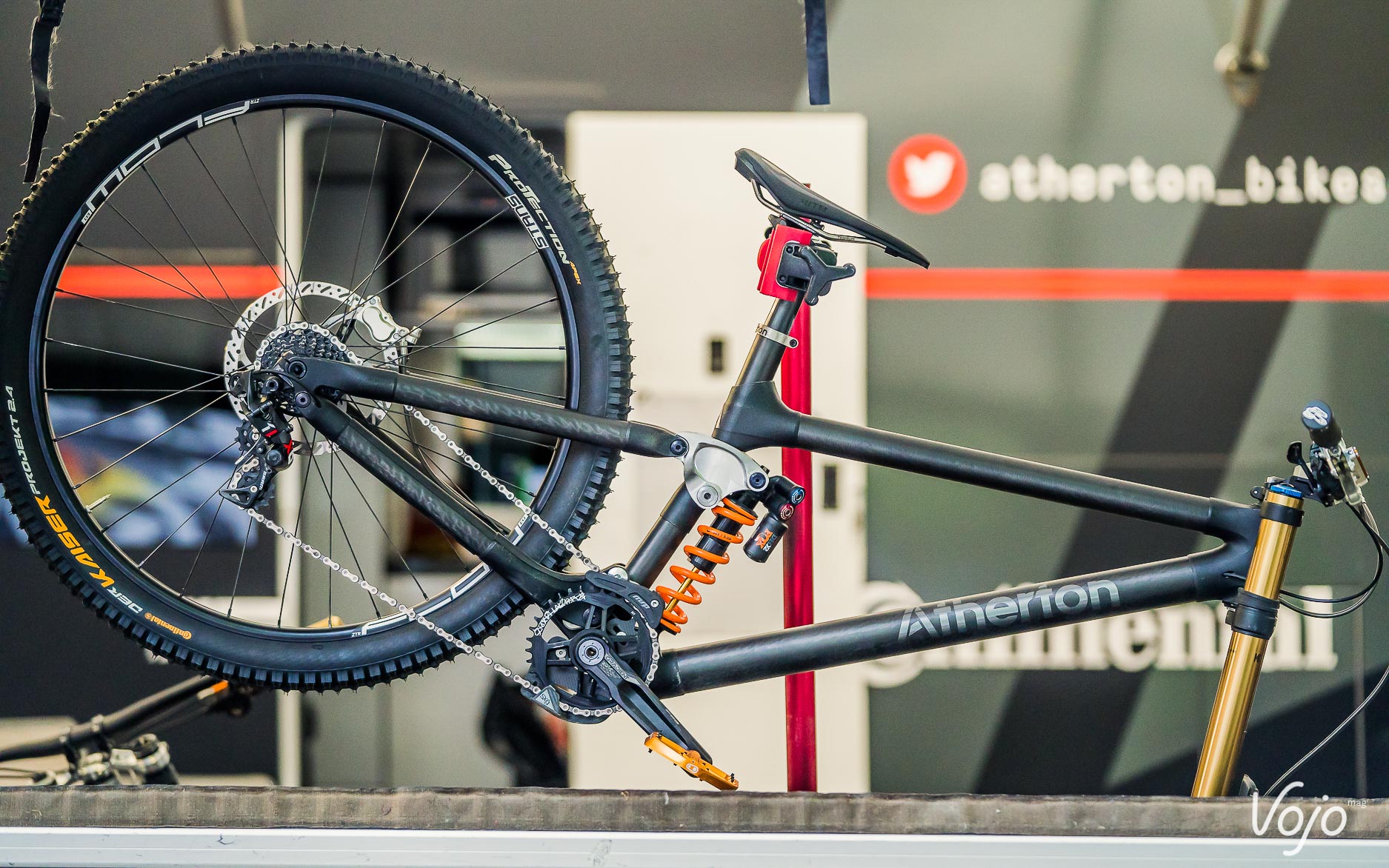 Autres machines très en vue dans les paddocks : les vélos Atherton Bikes. Issus d’une collaboration entre la fratrie britannique et Robot Bikes, ils ont la particularité d’être constitués de tubes en carbone collés sur des raccords titane imprimés en 3D.