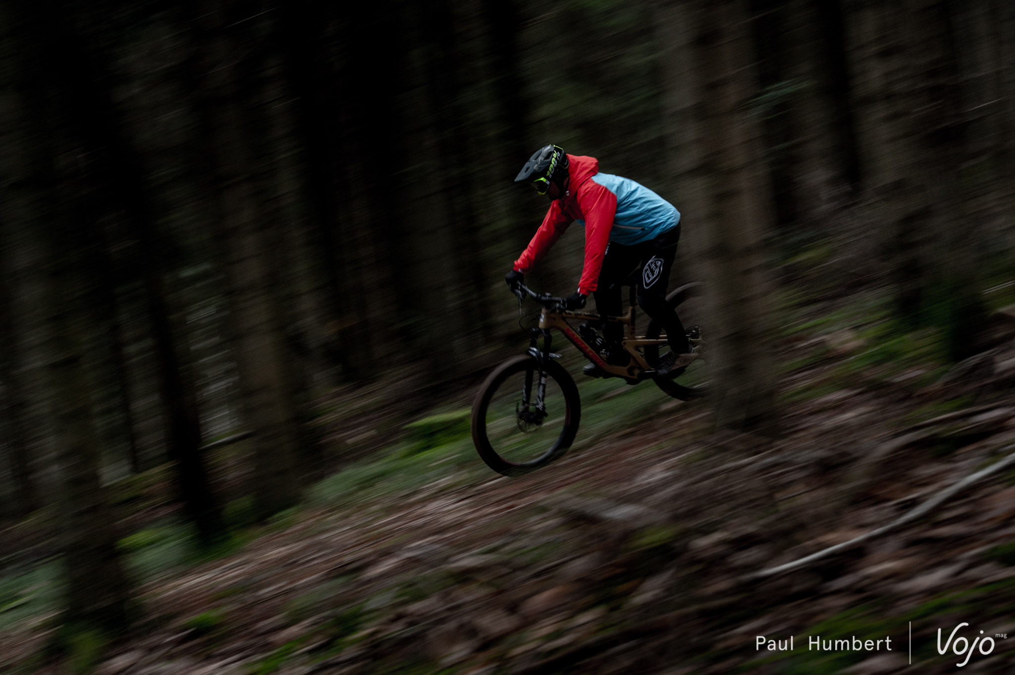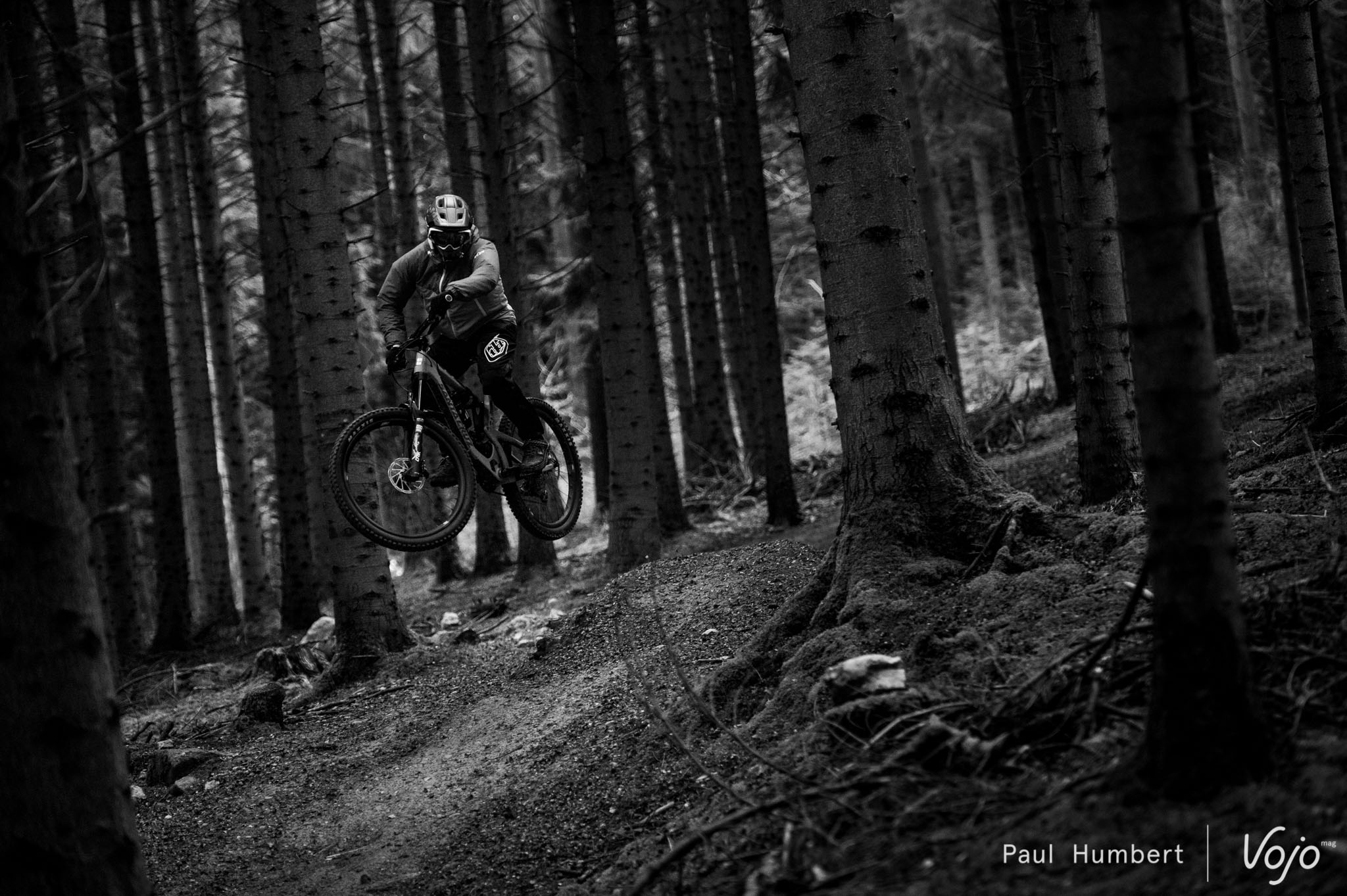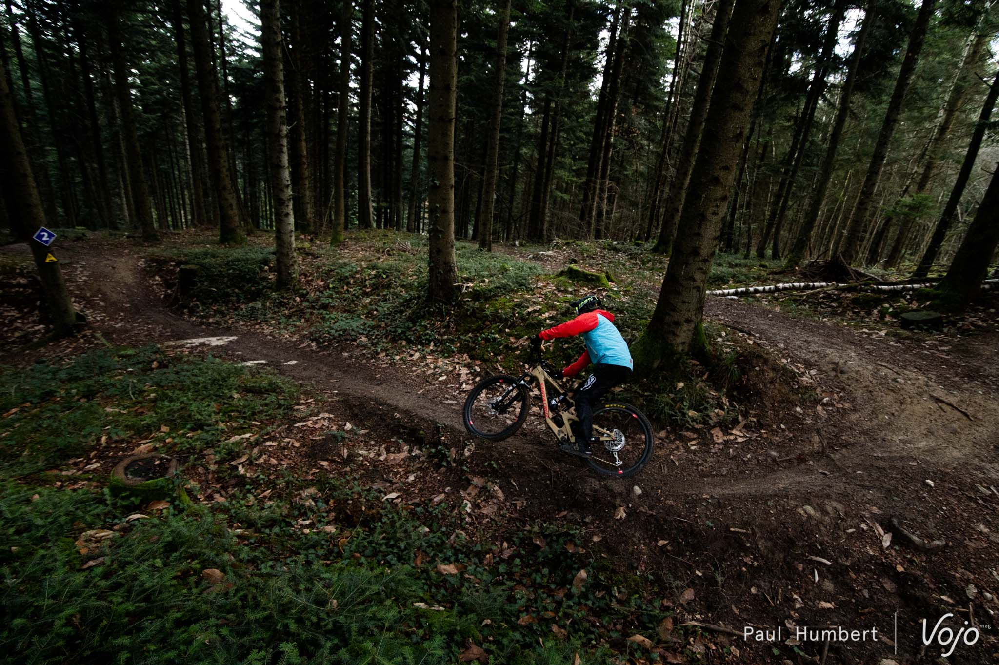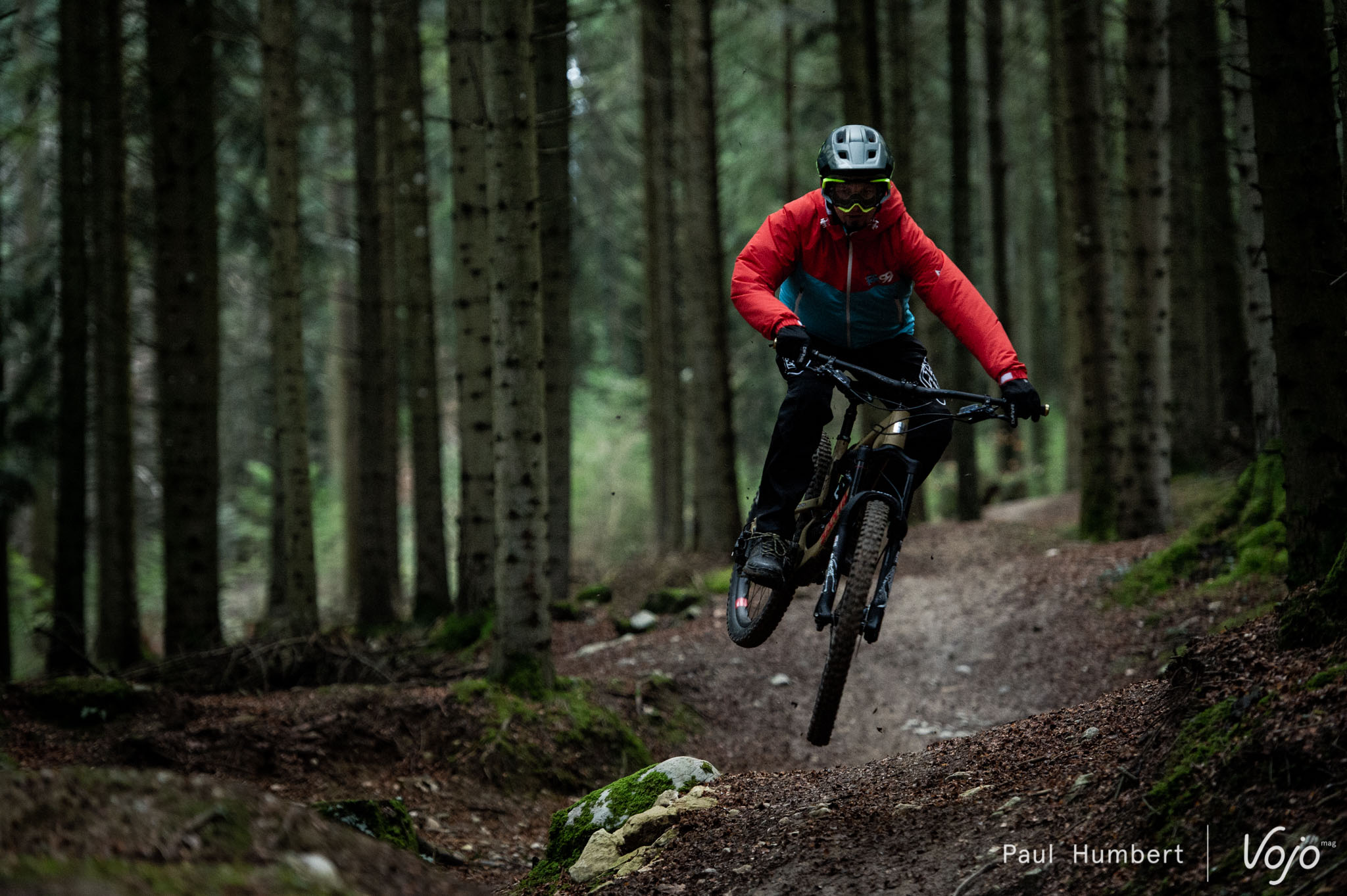 Jean-Michel profite de notre rencontre pour nous présenter un spot accessible à quelques minutes de chez lui : le Meyrieu Trail. L’association à l’origine de son développement travaille sur deux lignes mêlant flow et bosses de différentes tailles. Pour notre part, c’est sur la bleue que nous réalisons quelques images, avant de remonter en faire une, juste pour le plaisir !