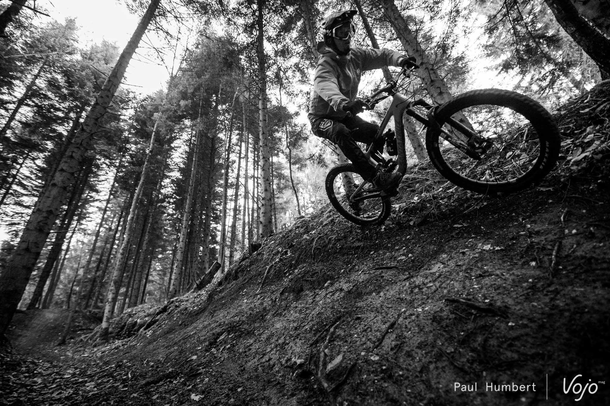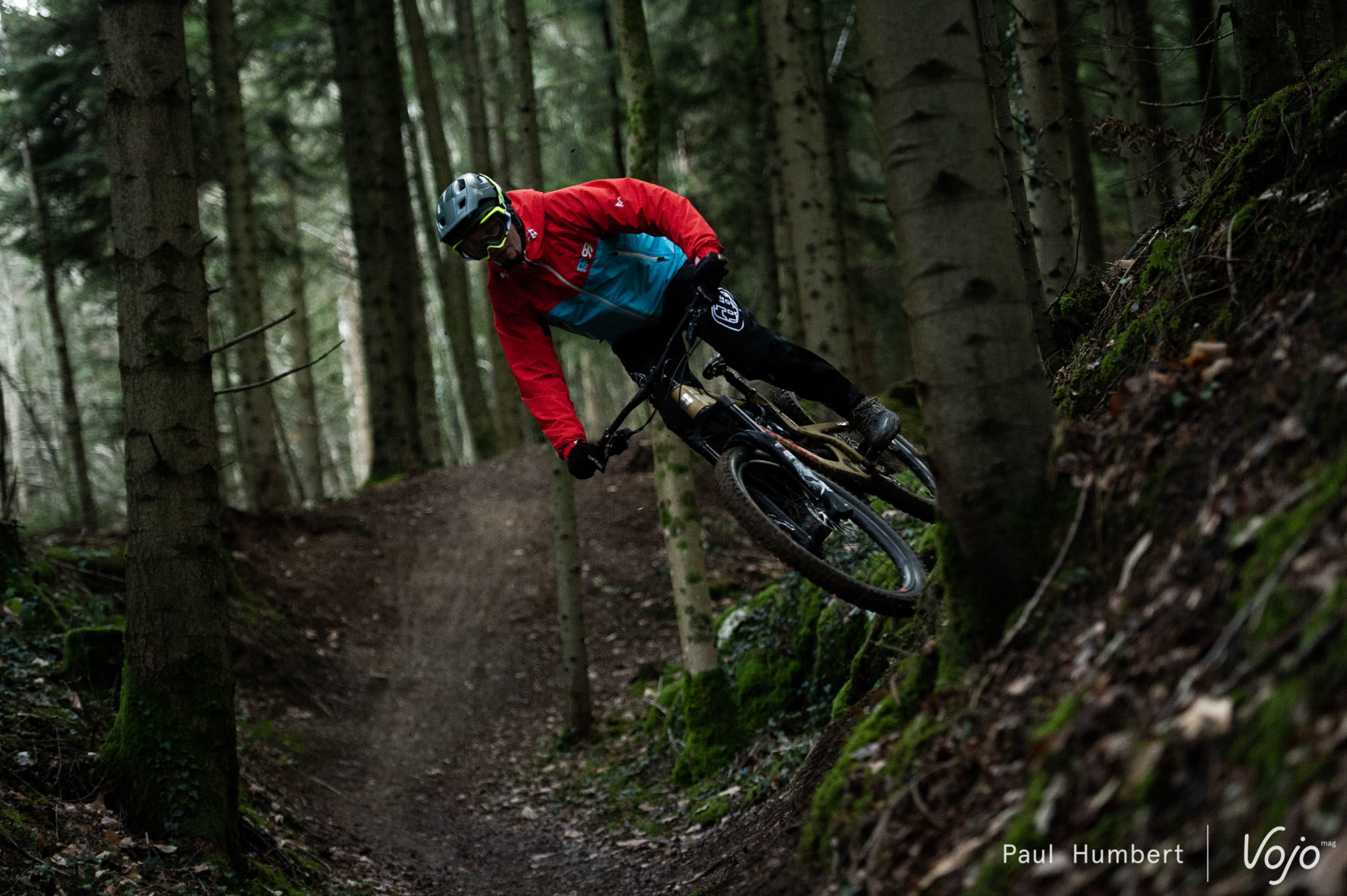 Jean-Michel profite de notre rencontre pour nous présenter un spot accessible à quelques minutes de chez lui : le Meyrieu Trail. L’association à l’origine de son développement travaille sur deux lignes mêlant flow et bosses de différentes tailles. Pour notre part, c’est sur la bleue que nous réalisons quelques images, avant de remonter en faire une, juste pour le plaisir !