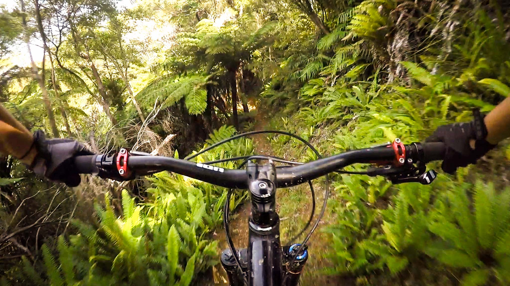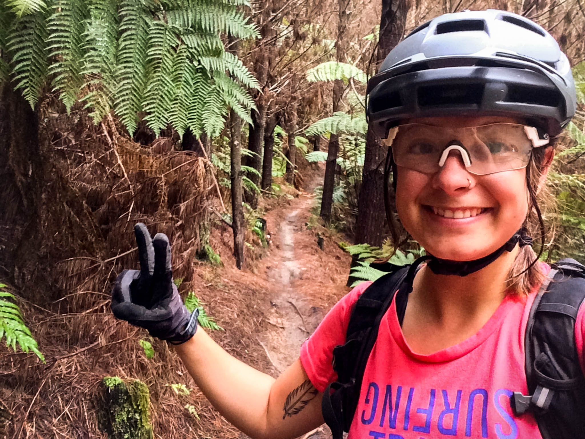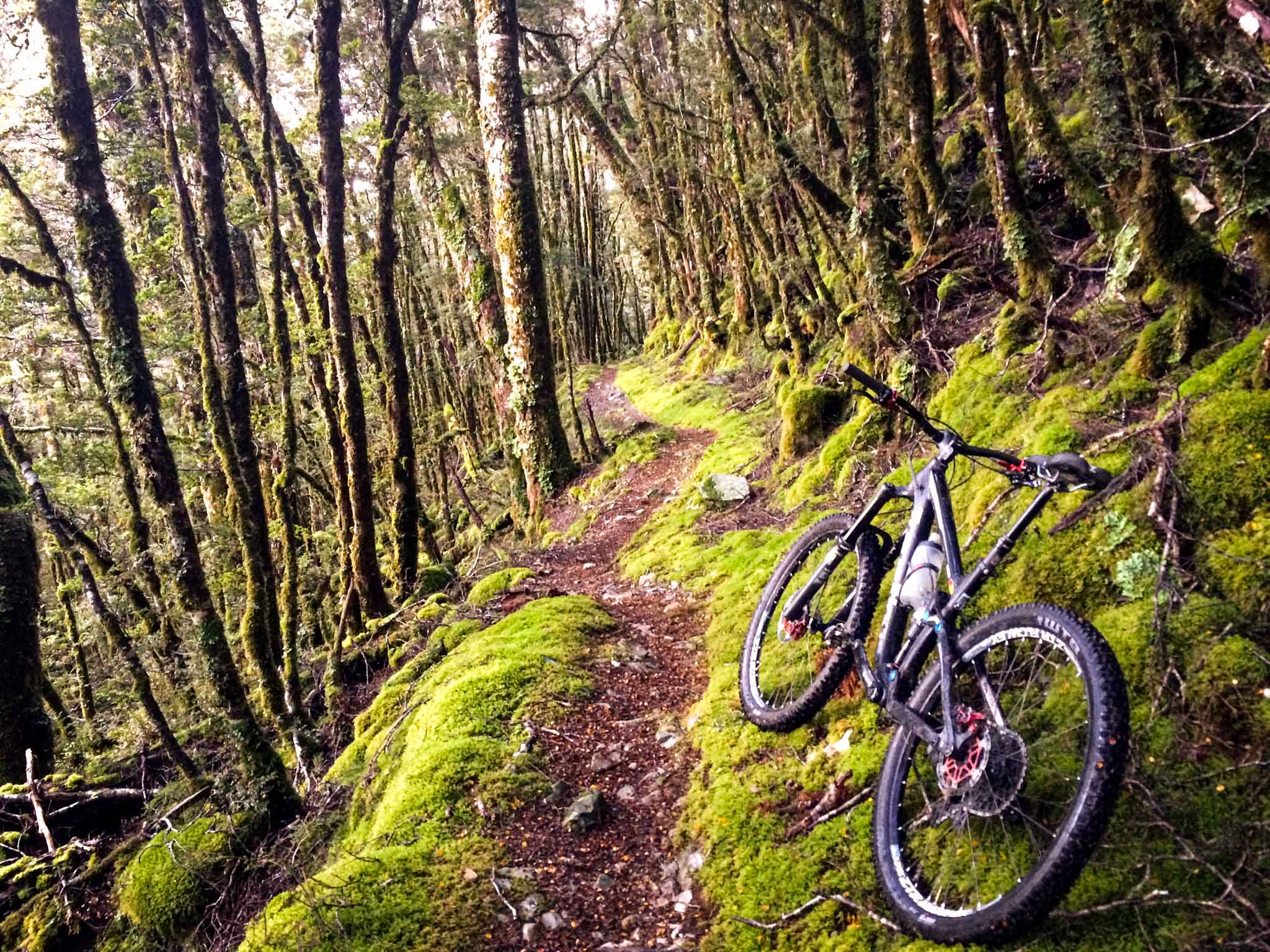 Je garde un sacré souvenir de cette sortie. À la sortie du van, j’ai subi une attaque de sandflies, ces toutes petites mouches qui paraissent toutes mignonnes, mais qui piquent bien plus que des moustiques ! Autant vous dire que je me suis préparée rapidos pour partir rouler. Je vous avoue que la montée c’était un peu le parcours du combattant avec pas mal de portages et de franchissements d’obstacles. Ça glissait pas mal et je n’était pas très rassurée. Arrivée en haut, la pluie et l’orage approchent. J’ai eu tellement peur que j’ai fait la descente d’une seule traite en priant pour que l’orage n’arrive pas au-dessus de moi ! Je n’ai regretté à aucune seconde d’avoir fait ce trail, l’atmosphère était magique tant le terrain était moelleux et les arbres remplis de mousse !