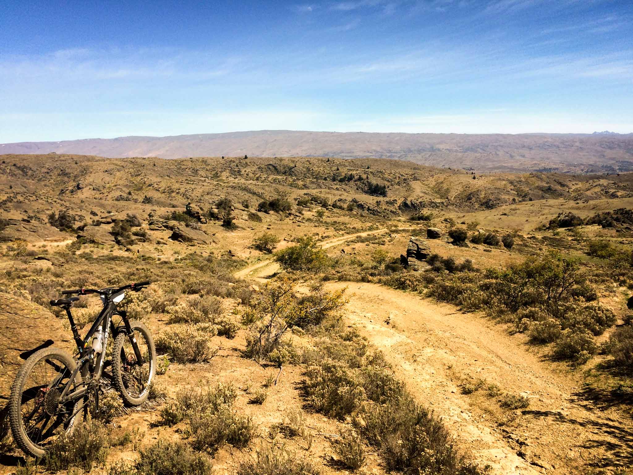 Avez-vous déjà vu des trails au milieu du désert ? A 1h30 seulement de Queenstown, on change complètement de décor et de climat. Les locaux qualifient le terrain de jeu de « mini Moab ». On aperçoit des sentiers à perte de vue au milieu des collines désertiques. Une sorte de bol de spaghettis géant, parfait pour les gourmands ! Tous les trails sont tracés en « private land », aucun sentier n’est officiellement balisé et à plusieurs reprises on doit traverser des barrières. En s’y aventurant seul, c’est difficile de trouver les sentiers les plus chouettes mais Altitude Bike saura vous conseiller et vous guider.