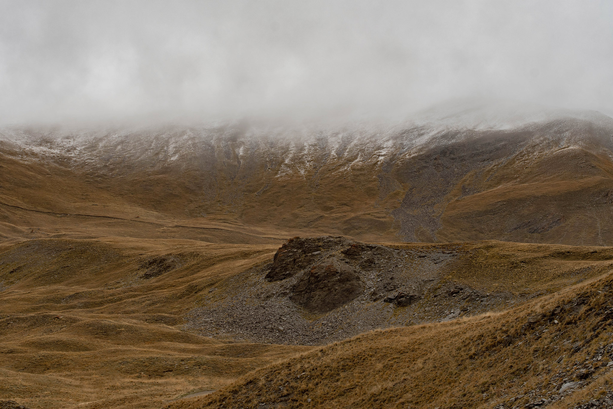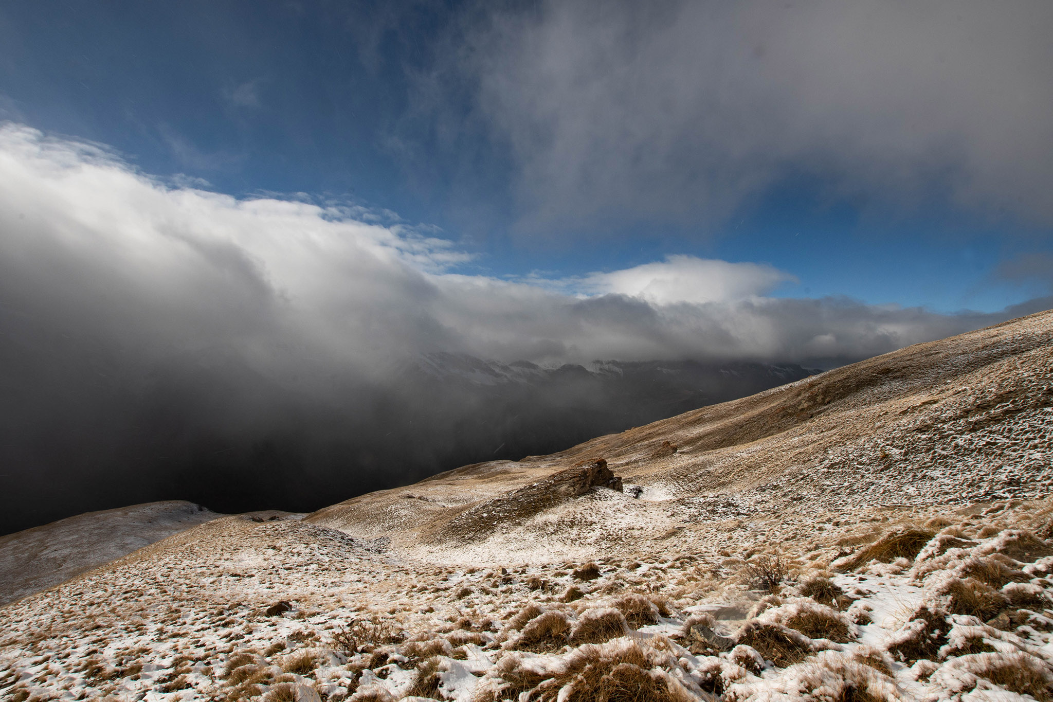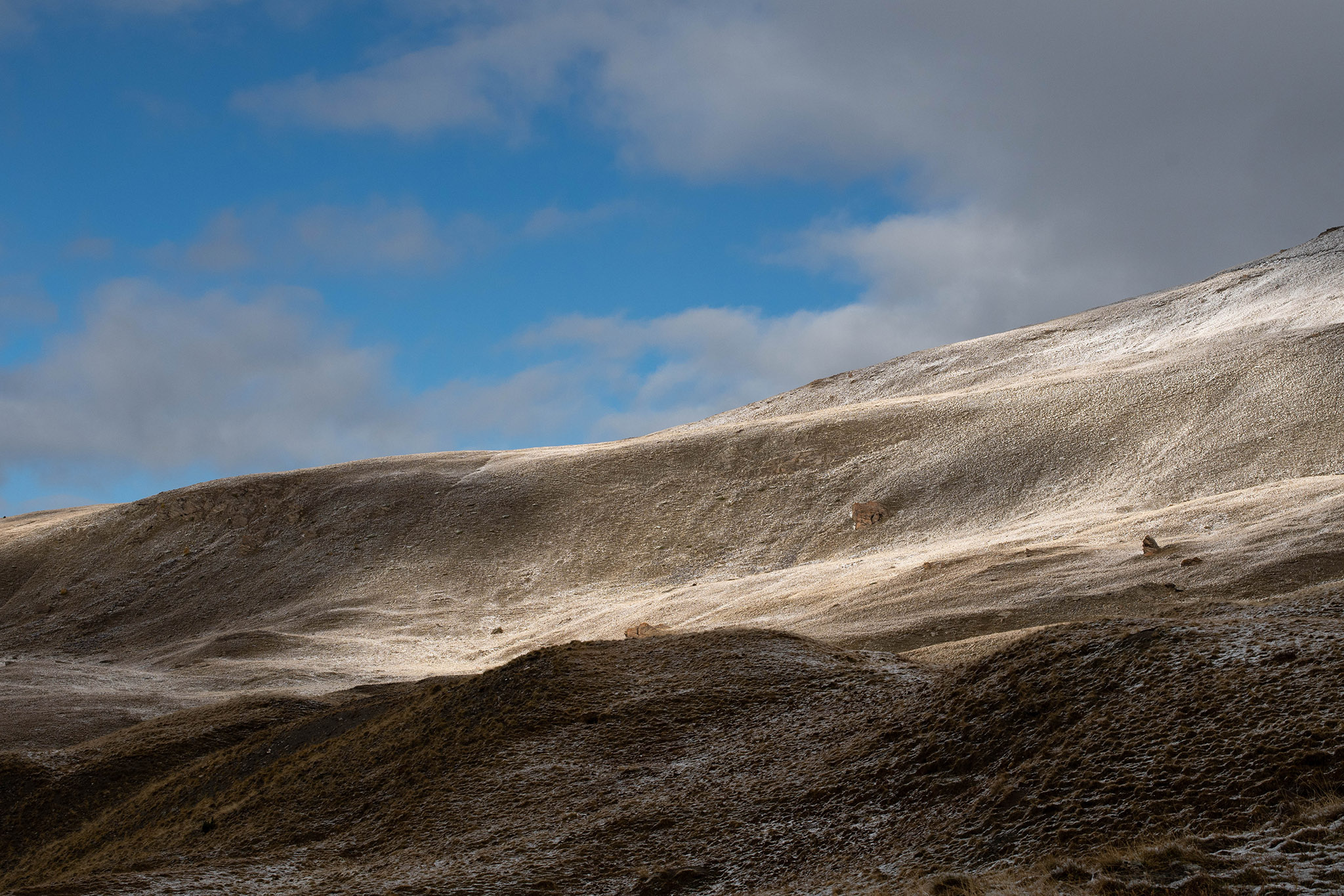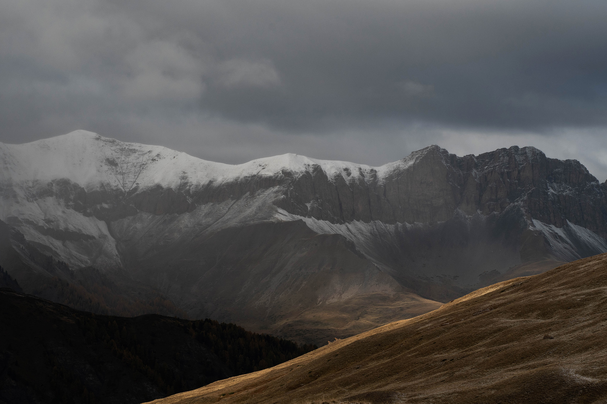 Je rencontre plutôt des ornières et une boue collante : les pneus de mon gravel ne sont guère adaptés. Qu’importe : plus je grimpe, plus le froid fige le sol. Le chemin gèle et devient plus roulant, du moins jusqu’à 2.600 mètres. Peu après la bifurcation vers le col du Longet, le chemin caracolant sur le versant se couvre peu à peu de neige : l’hiver a déjà établi ses quartiers en altitude.