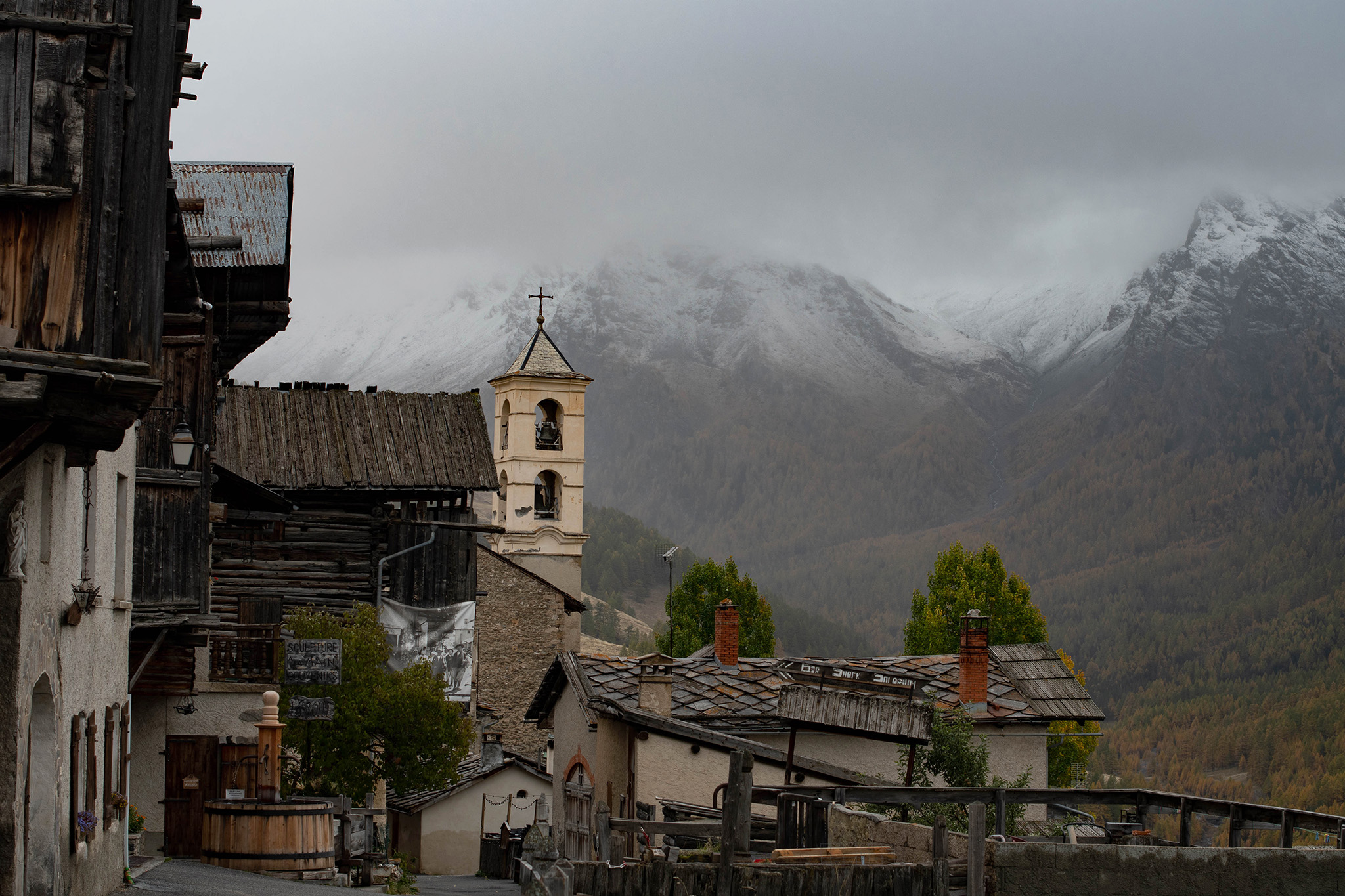Depuis La Chalp, je compte d’abord rejoindre non pas un col ou un sommet, mais le village perché le plus haut d’Europe, Saint-Véran. Et son altitude est sans équivoque : 2.050 mètres pour un lieu habité toute l’année. Elle dépasse celle de la plupart des stations de ski. Tignes en Savoie la rivalise mais demeure artificielle et fut construite pour le loisir. Ici, à Saint-Véran, on y vit depuis des siècles, à travailler dans les prés tout l’été ou à se blottir face au froid intense en hiver.
