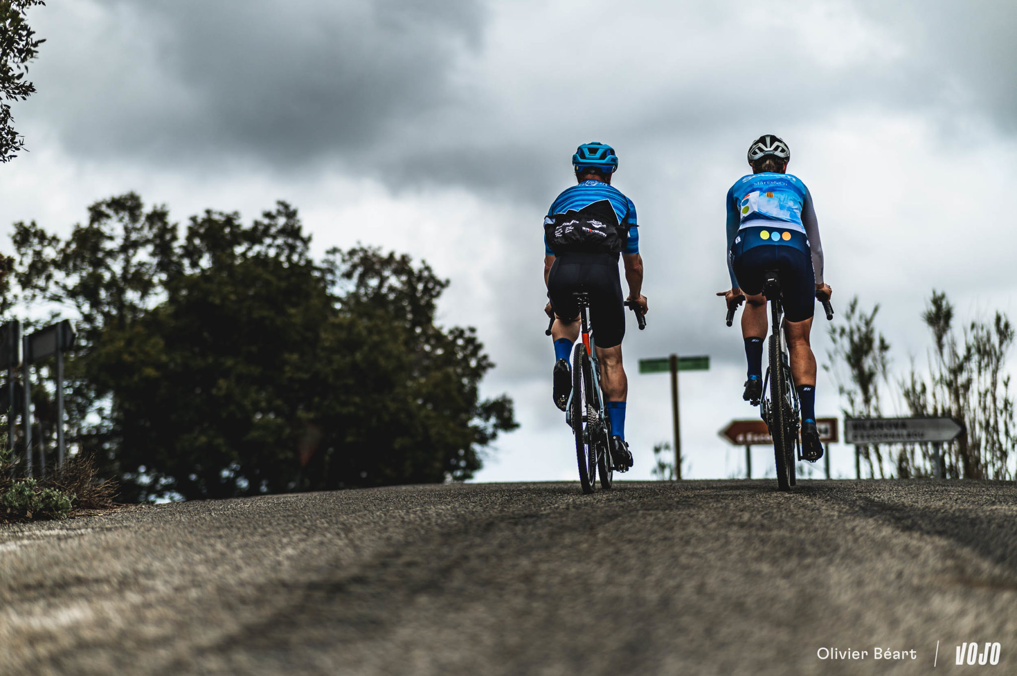 Côté vélos, le Kanzo Adventure de Veerle et Olivier est clairement plus adapté que le Grifn qui se montre fort rigide et dont les développements de vélo de route s’accordent assez mal avec les coups de cul très raides qui émaillent notre tracé. Vous voilà prévenus pour le choix de la machine : ici, mieux vaut un vrai gravel avec des développements pas trop longs, qu’un (quasi) vélo de route à pneus cramponnés.