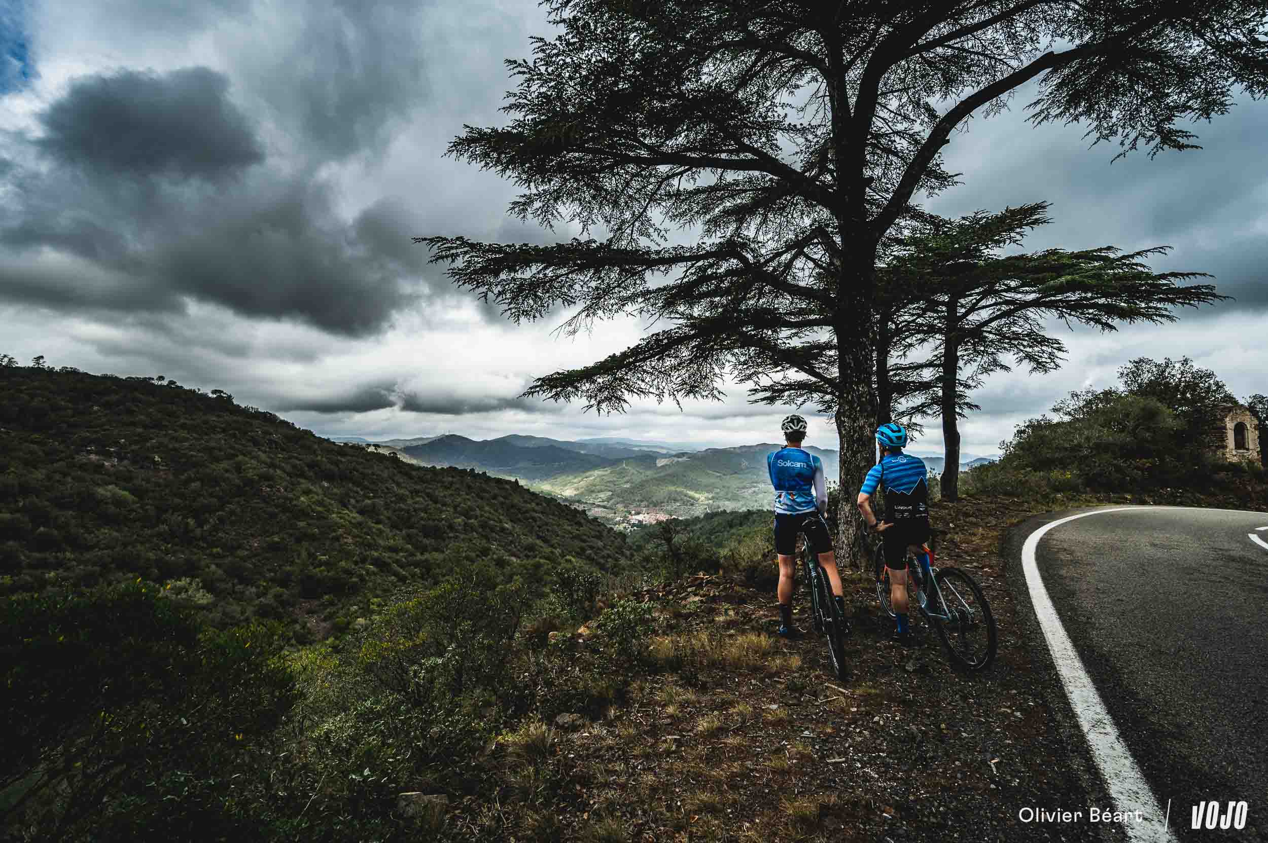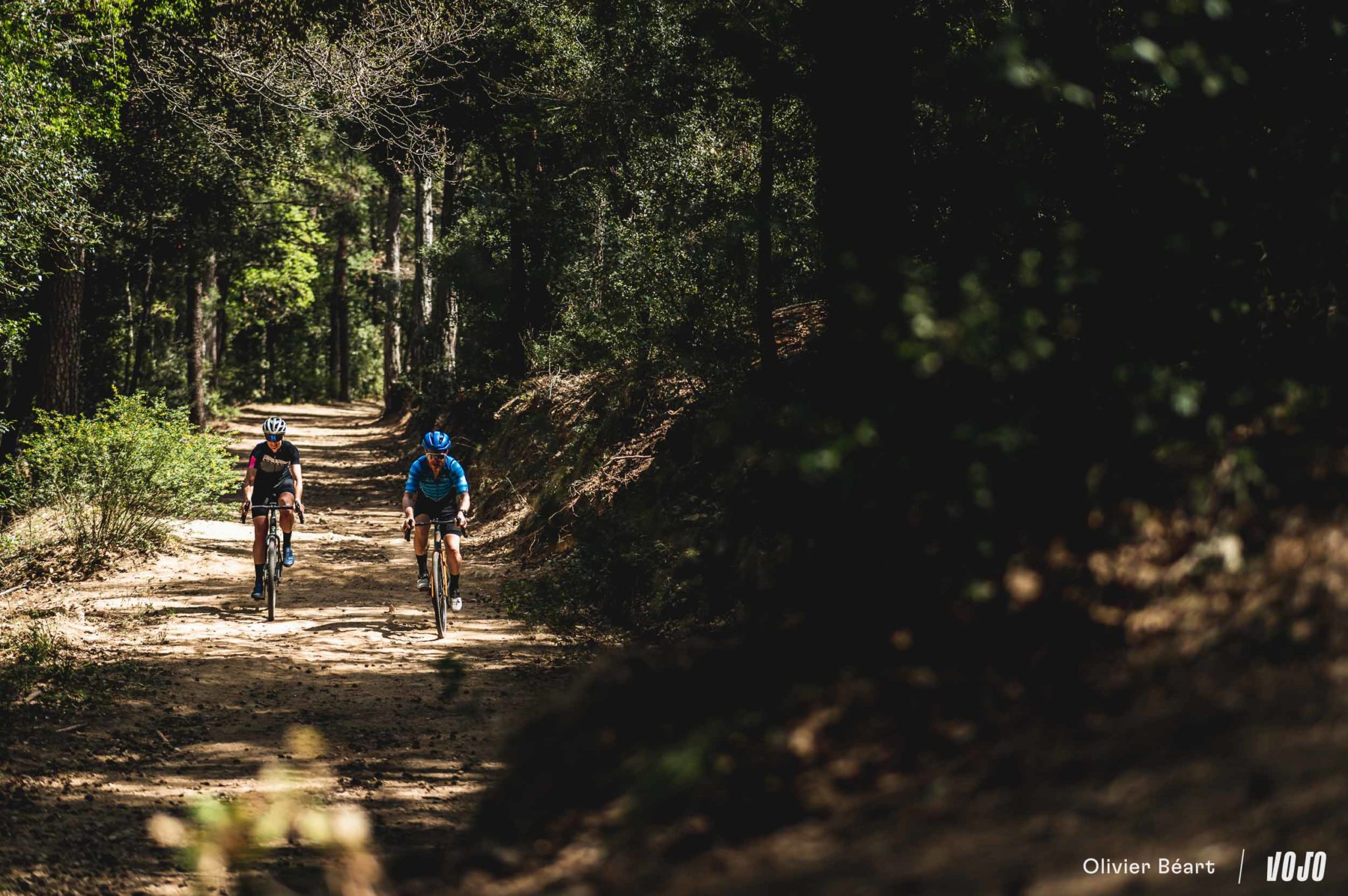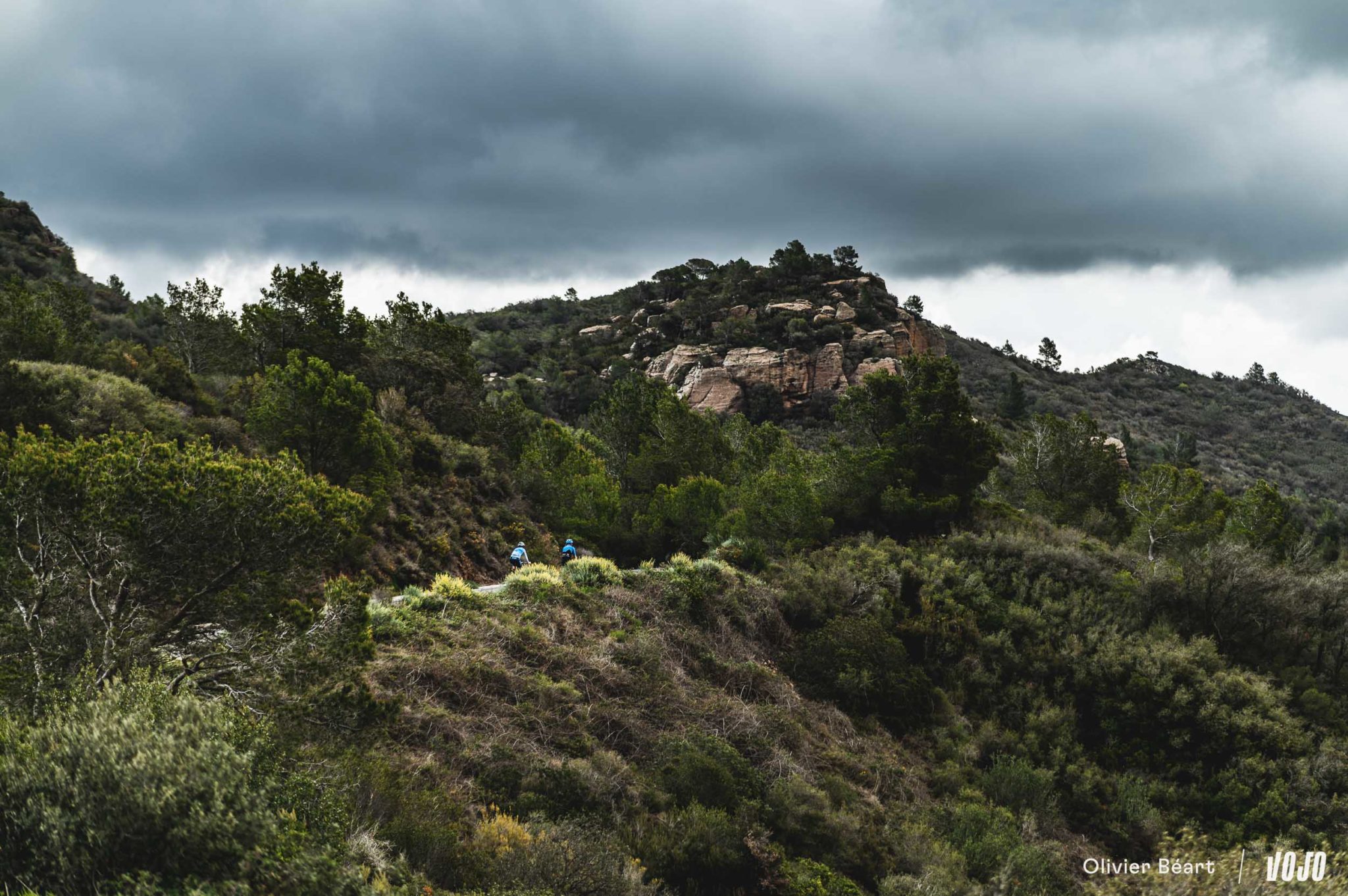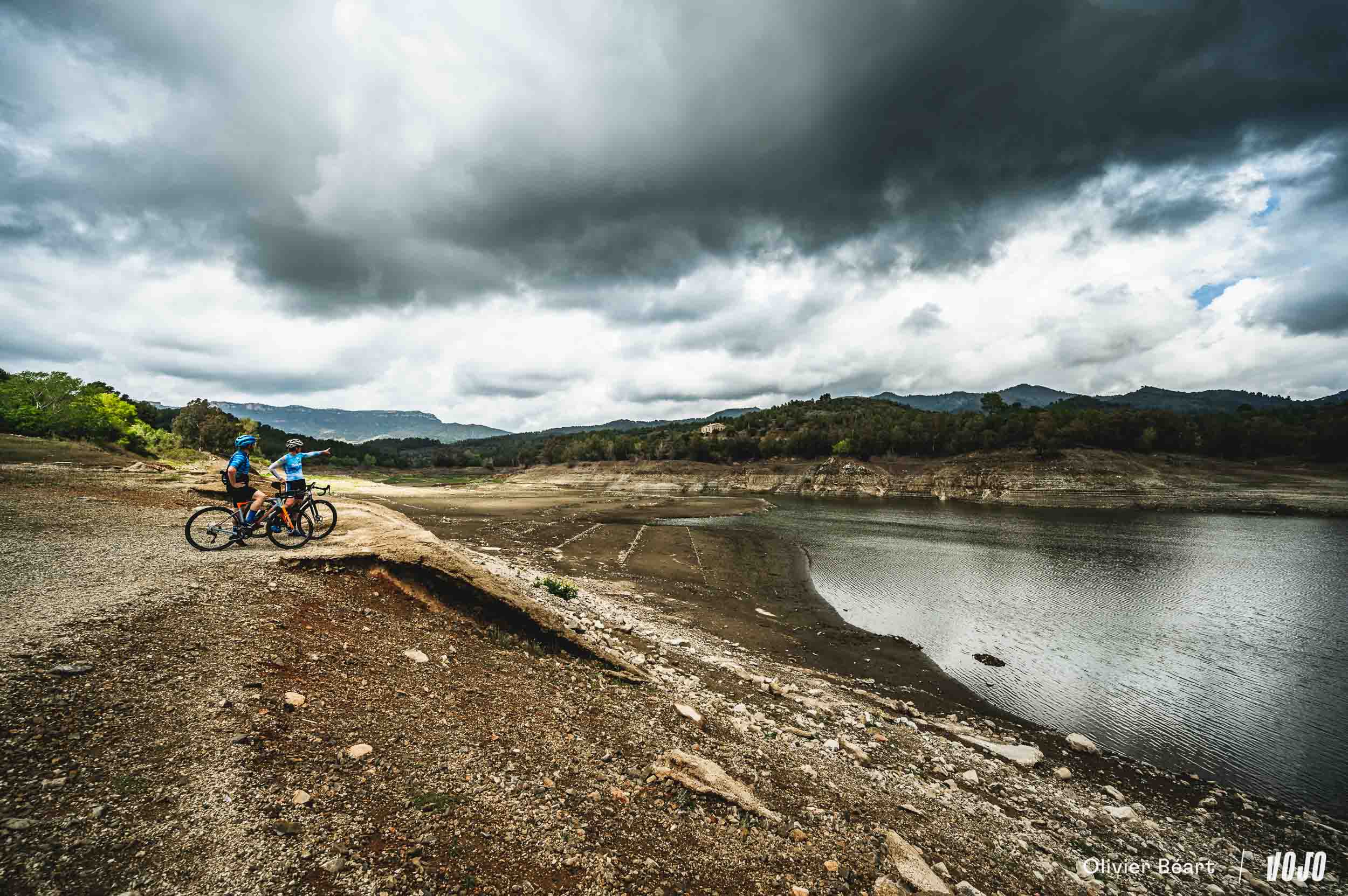 Notre guide nous a immédiatement indiqué que les chemins sur lesquels nous allons rouler sont jonchés de cailloux assez gros et que le Grifn sur les chemins de gravel catalans n’est pas un cadeau. Veerle et Olivier (avec son matériel photo), prennent le Kanzo Adventure, alors que Jeffry choisit le Grifn.
