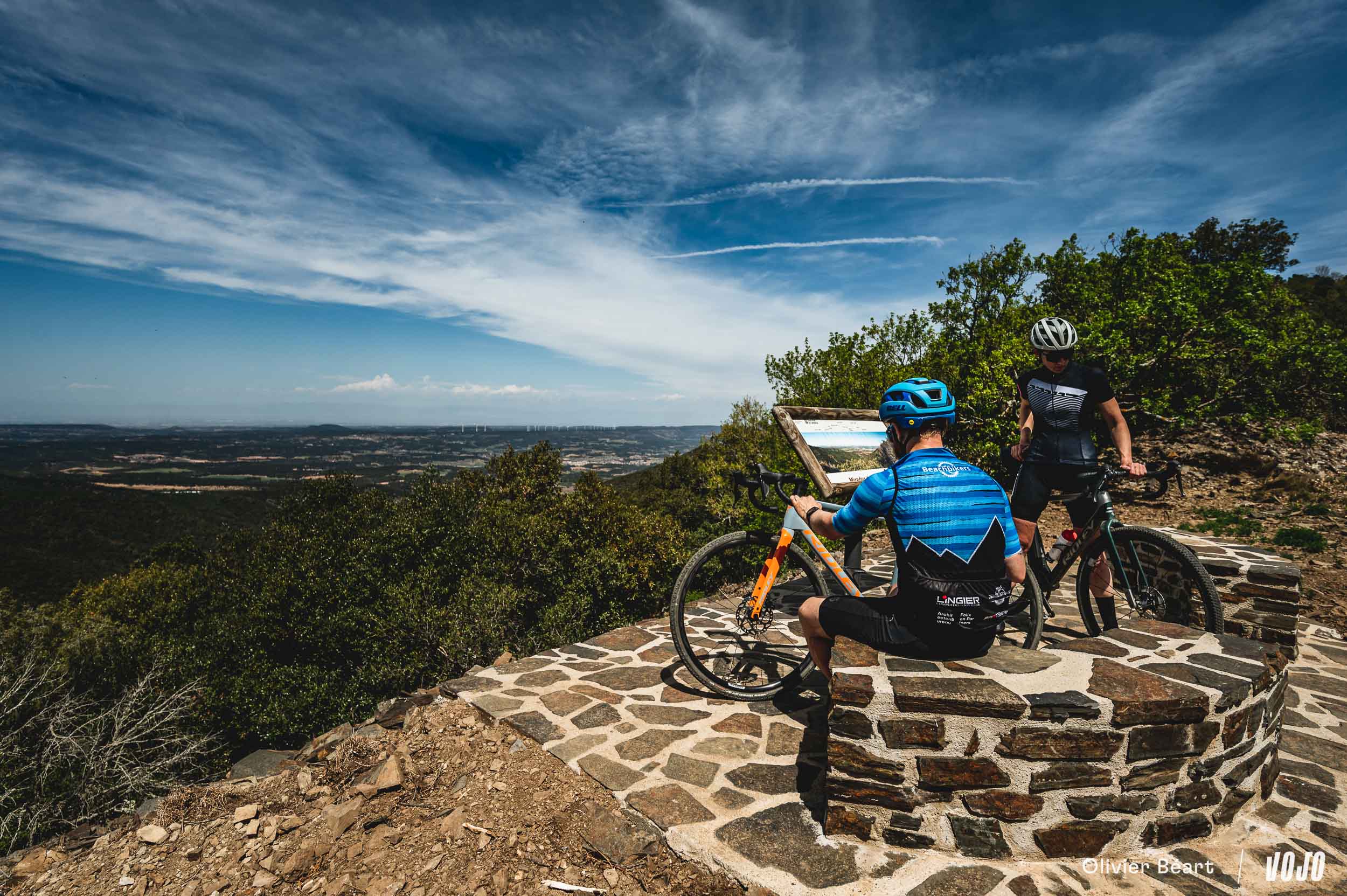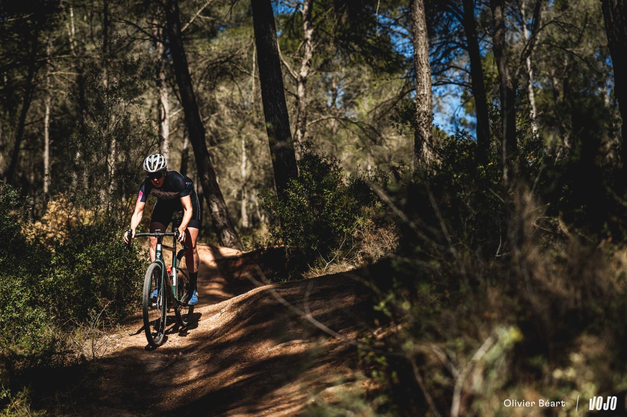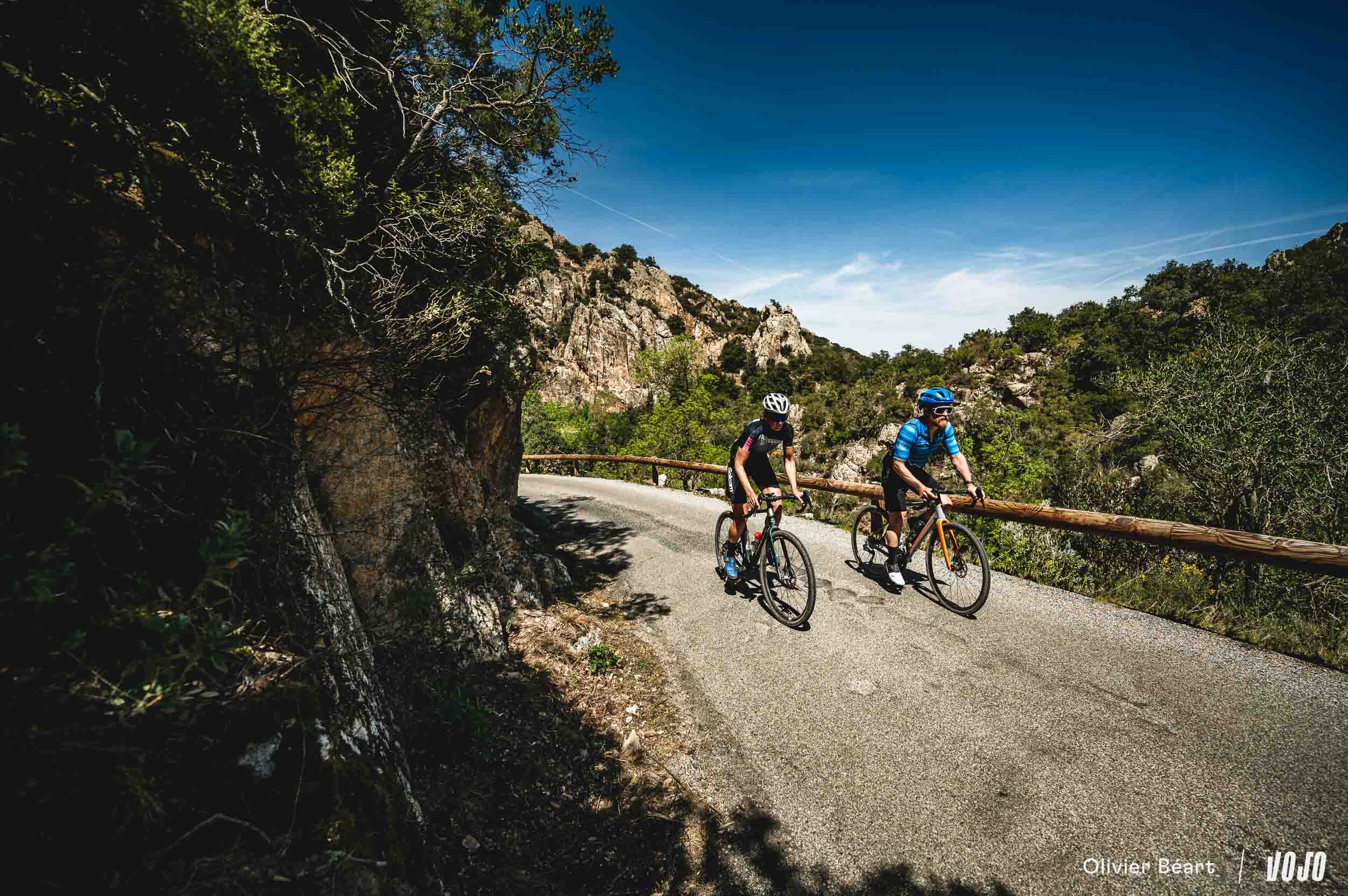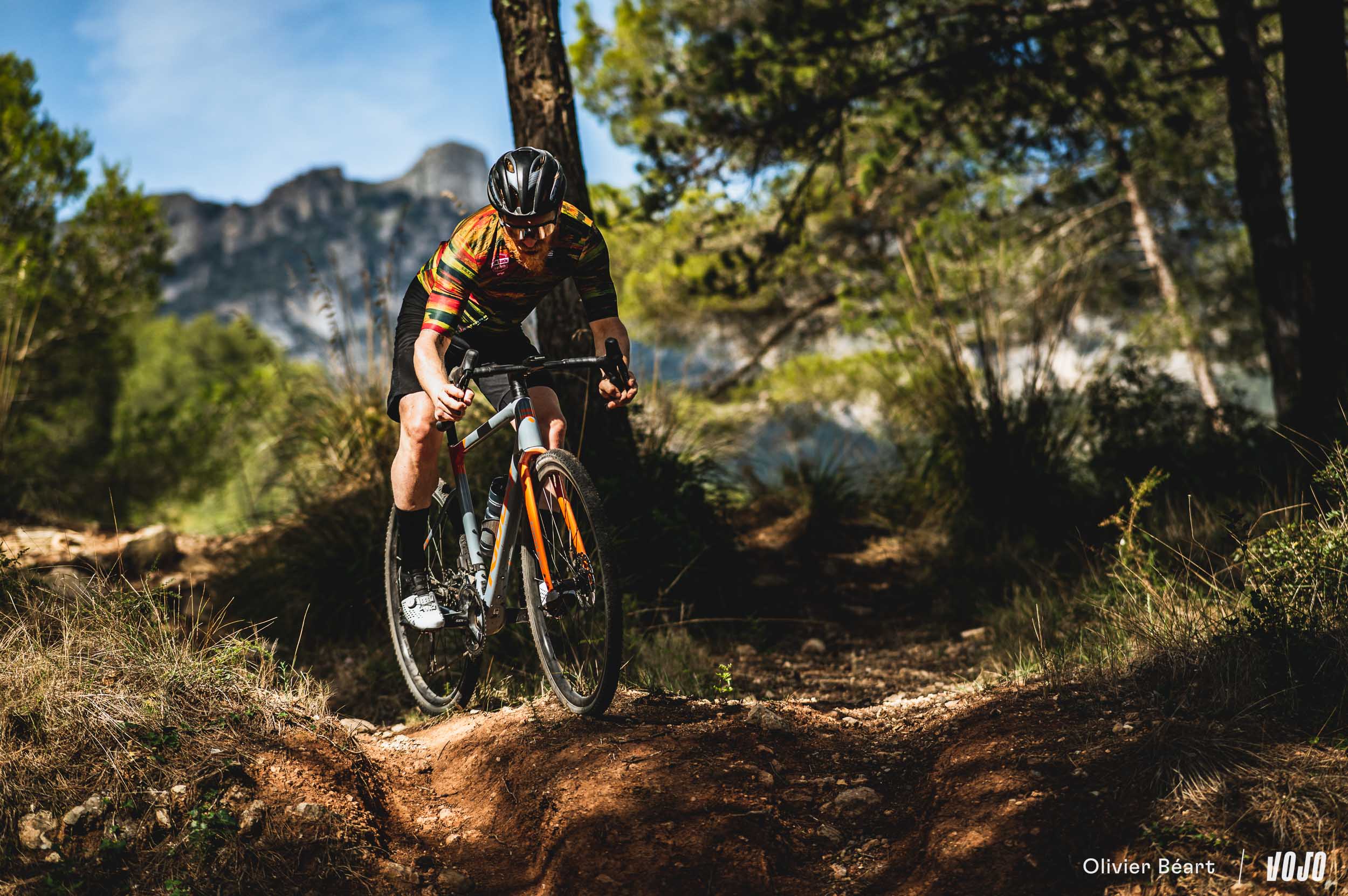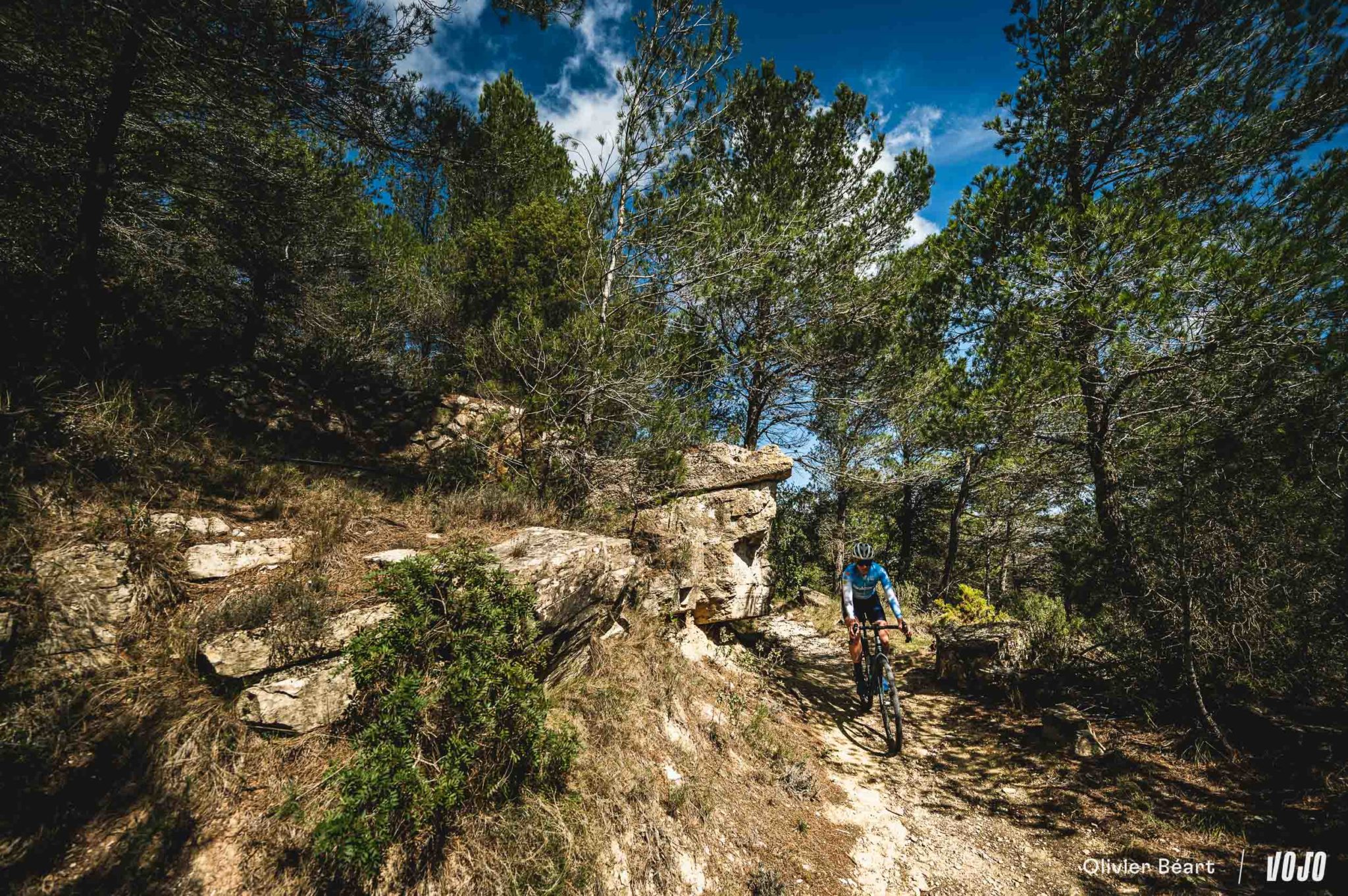 Notre guide nous a immédiatement indiqué que les chemins sur lesquels nous allons rouler sont jonchés de cailloux assez gros et que le Grifn sur les chemins de gravel catalans n’est pas un cadeau. Veerle et Olivier (avec son matériel photo), prennent le Kanzo Adventure, alors que Jeffry choisit le Grifn.