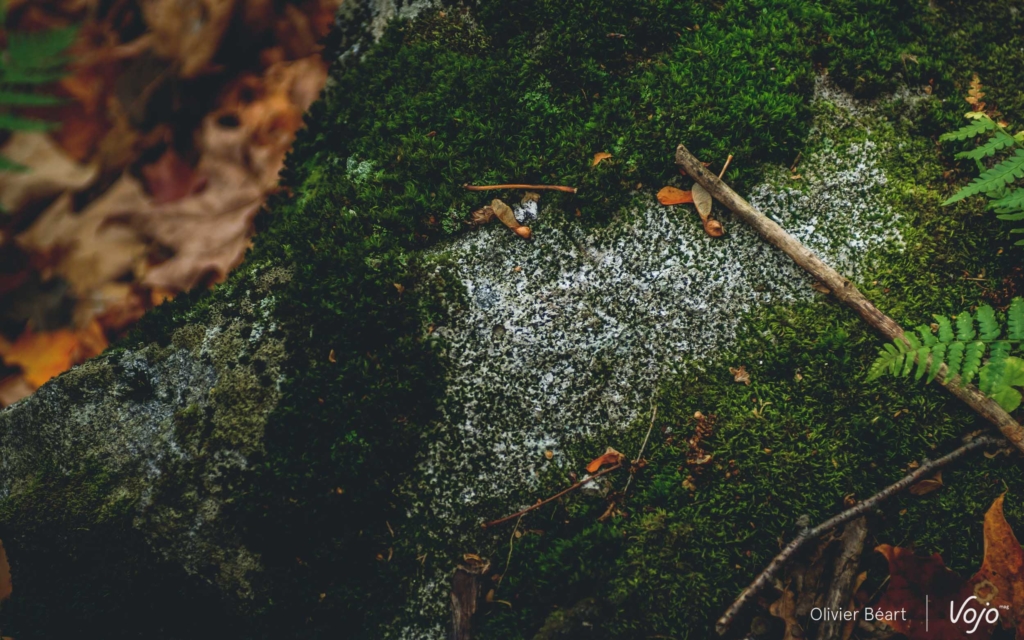Le granit s’effrite et se transforme en une petite poussière parfaitement drainante. Au bord de la piste, les fougères sont reines, comme les érables et quelques conifères qui poussent naturellement.