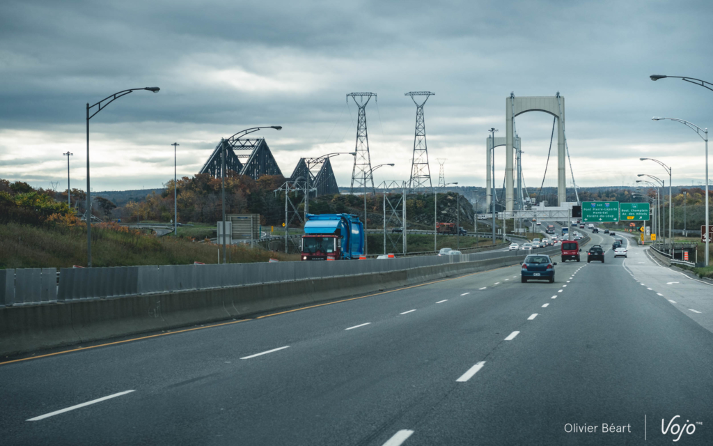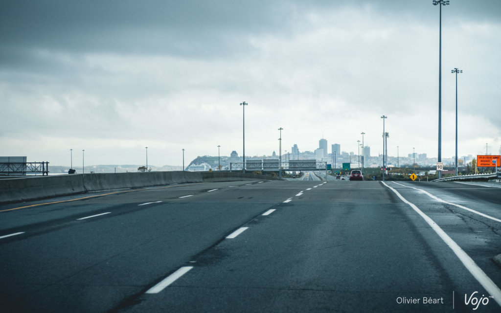 Pour arriver jusque là, il y a un peu de route : trois bonnes heures. Les vélos doivent être démontés, rangés dans le camion, et on en profite pour vérifier que tout est toujours ok au niveau mécanique. En chemin, le ciel est gris et l’autoroute franchement morne. Aucun relief, des bandes quasi désertes… même en approchant de Bromont, on se demande un peu où on va pouvoir rouler. C’en est presque déprimant. Mais le sourire complice de Remy, notre G.O. de cette magnifique semaine, nous rassure. Il a même un temps envisagé d’aller habiter là, c’est dire !