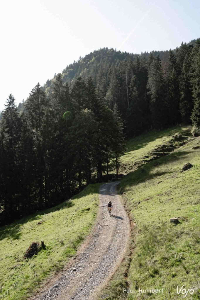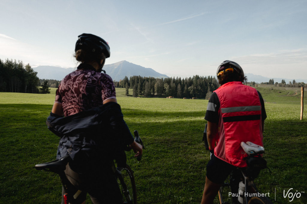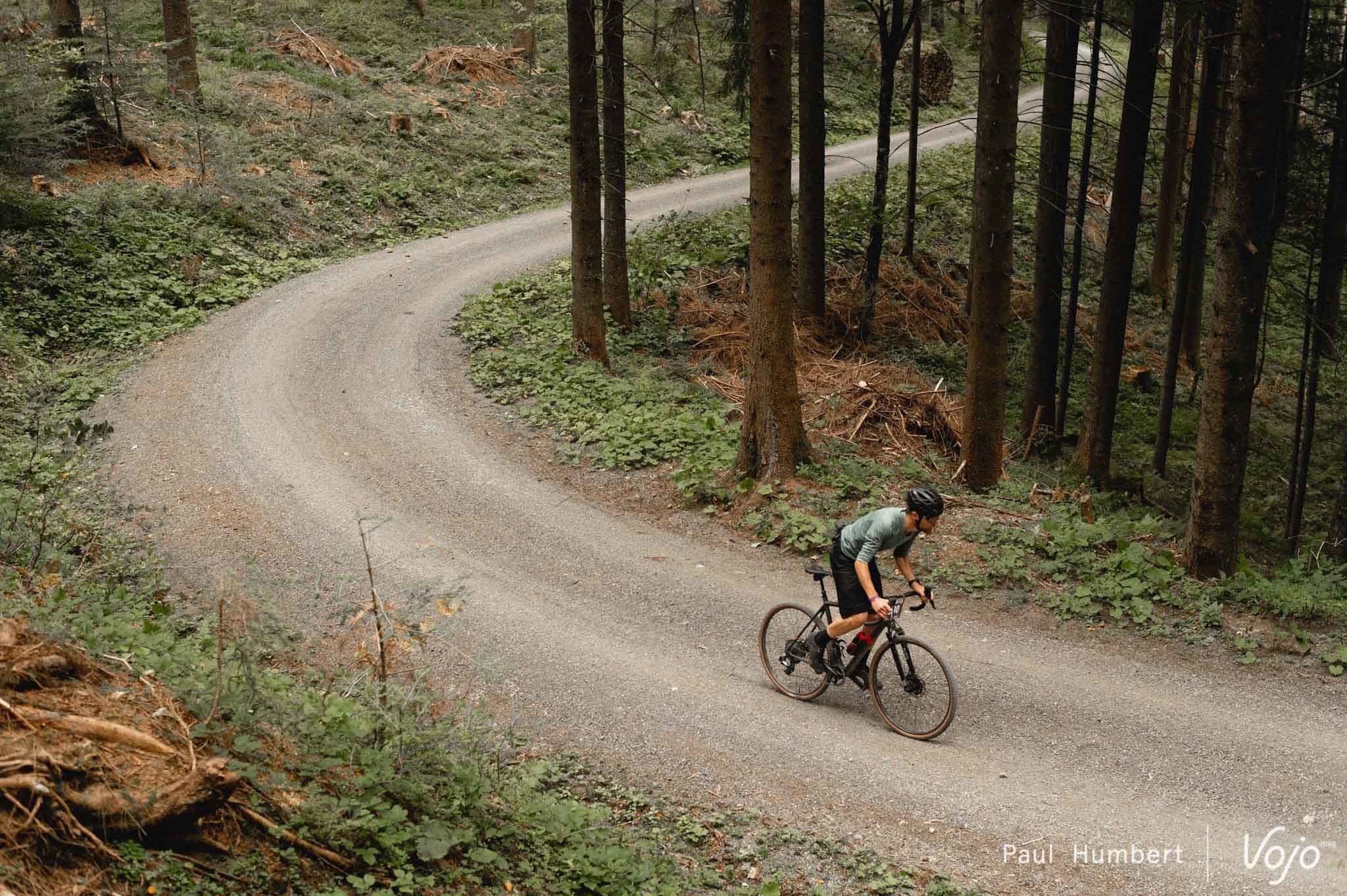 L’itinéraire passait d’ailleurs par quelques pépites qu’on aurait bien aimé avoir la veille, si possible en spéciale : un petit « double track » sur du gravier dans la forêt, un single joueur entre forêts et alpages, des petites routes en balcon vides de toute circulation…