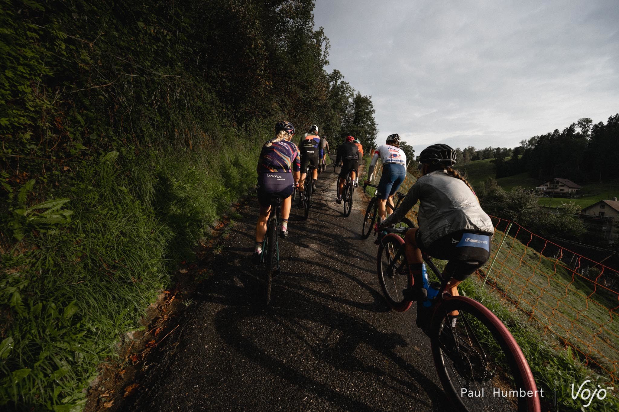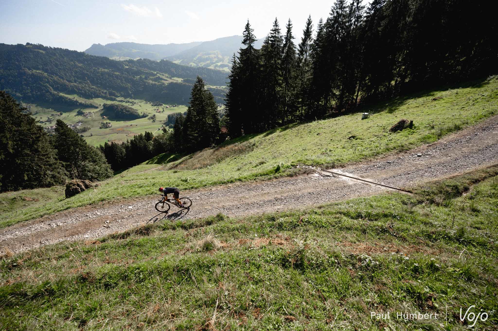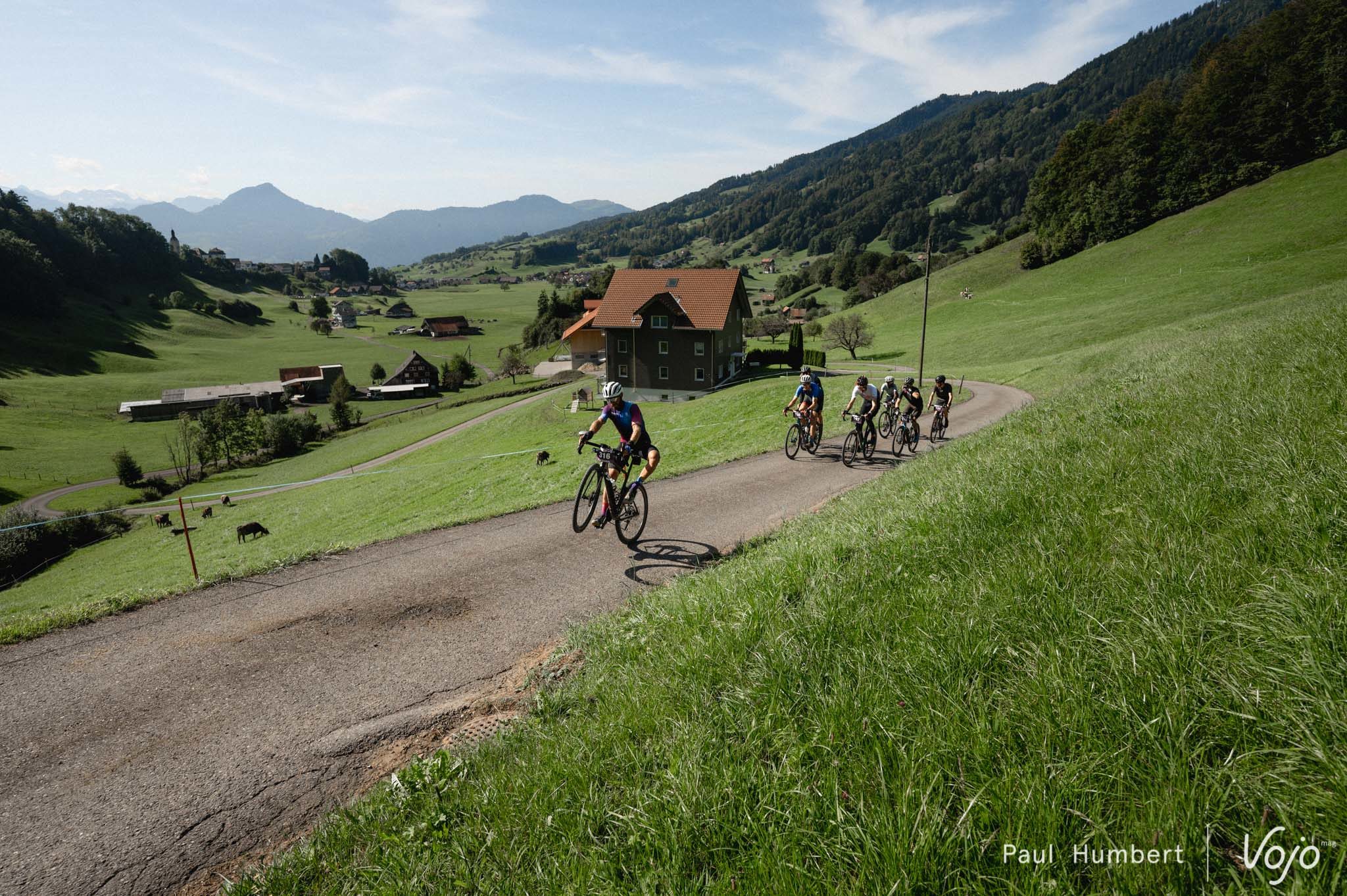 Et on comprend vite que quand ça monte, ça ne fait pas semblant ici ! On a beau être dans une partie de la Suisse plus vallonnée que réellement montagneuse, les pourcentages sont bien présents dès la première montée. Ils se calment toutefois à mesure que la petite route raide se transforme en piste au revêtement parfait et on est presque sur un plateau lorsqu’on arrive au départ de la seule spéciale du jour.