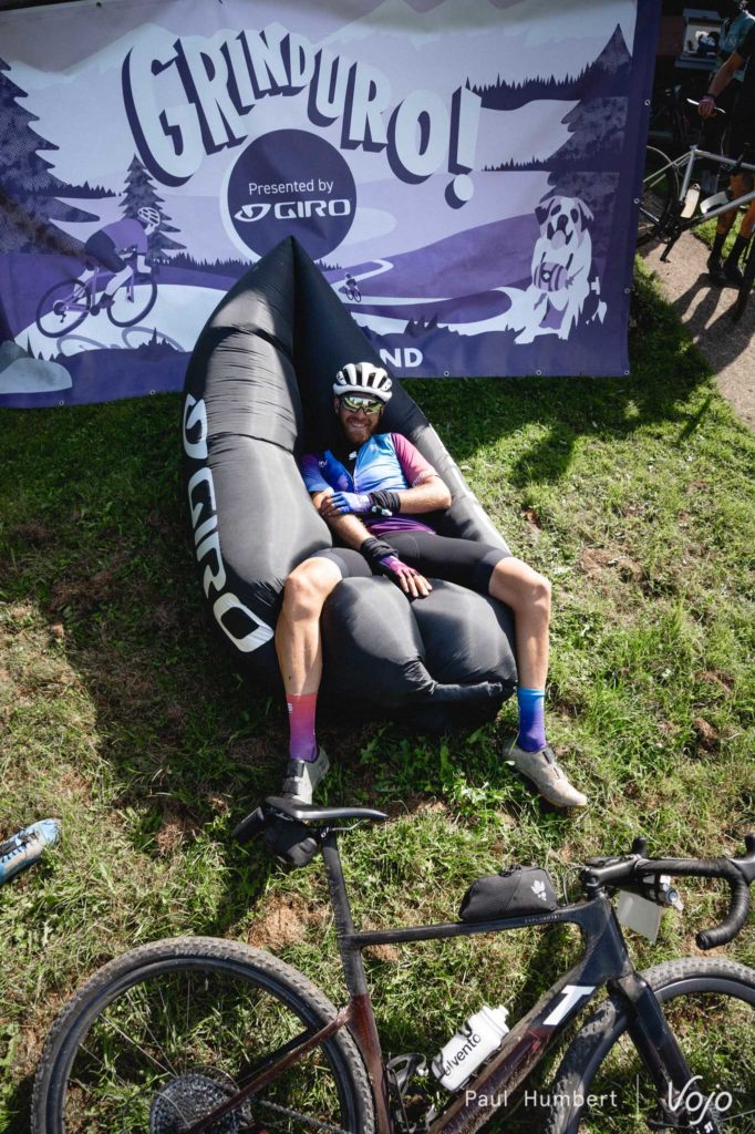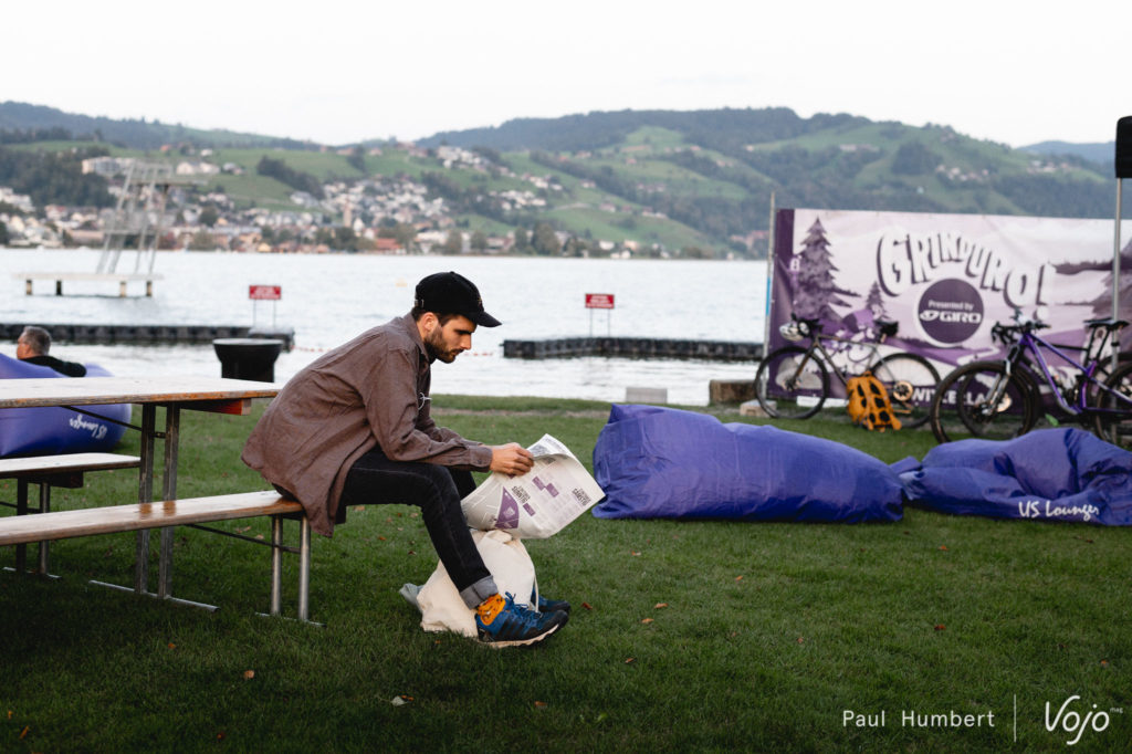Restait à convaincre un partenaire solide et c’est Giro qui a sauté dans l’aventure, tout de suite convaincu du potentiel de ce type d’évènement. Avance rapide jusqu’en 2021 et nous voici en Suisse sur les rives du joli lac d’Ägeri, à une petite heure de Zürich. Très bucolique, le site accueille le salon du tout premier Grinduro Switzerland. Giro est toujours partenaire de l’évènement mais la marque américaine n’est plus seule : Sram, Zipp, Maxxis et Komoot se sont joints au projet, ainsi que Canyon pour les dates européennes.