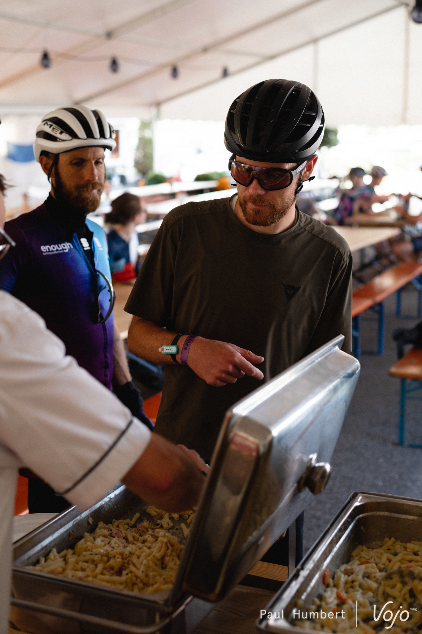 Il fallait avoir le cœur bien accroché pour l’avaler juste après une montée aussi violente mais pas de panique pour celles et ceux (dont moi) qui ont fait l’impasse, le vrai ravitaillement n’était que quelques kilomètres à peine vallonnés plus loin. Plat de pâtes, petit dessert, café, de quoi repartir en pleine forme pour la deuxième moitié du parcours ! Une assistance mécanique était également présente, pour les pilotes qui auraient rencontré quelques soucis en début de journée.