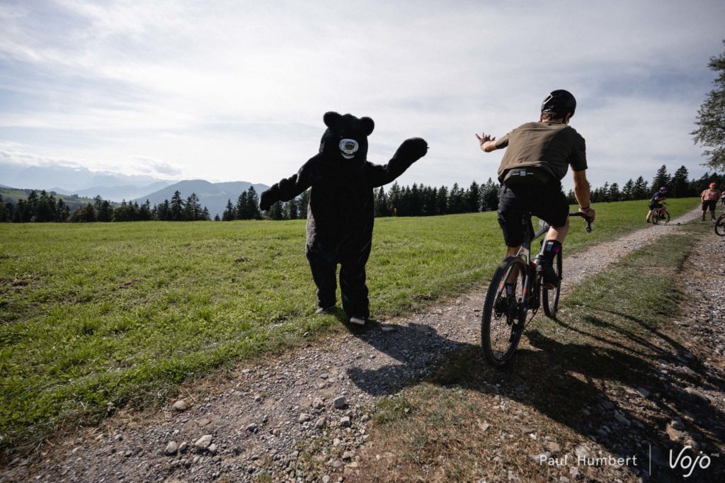 Chez Sram, on a sorti les glaces et les fléchettes, on peut aller se faire masser chez Komoot, des séances de yoga s’improvisent sur la pelouse… Seul l’ours rencontré plus tôt semble un peu fatigué et finalement bien inoffensif.
