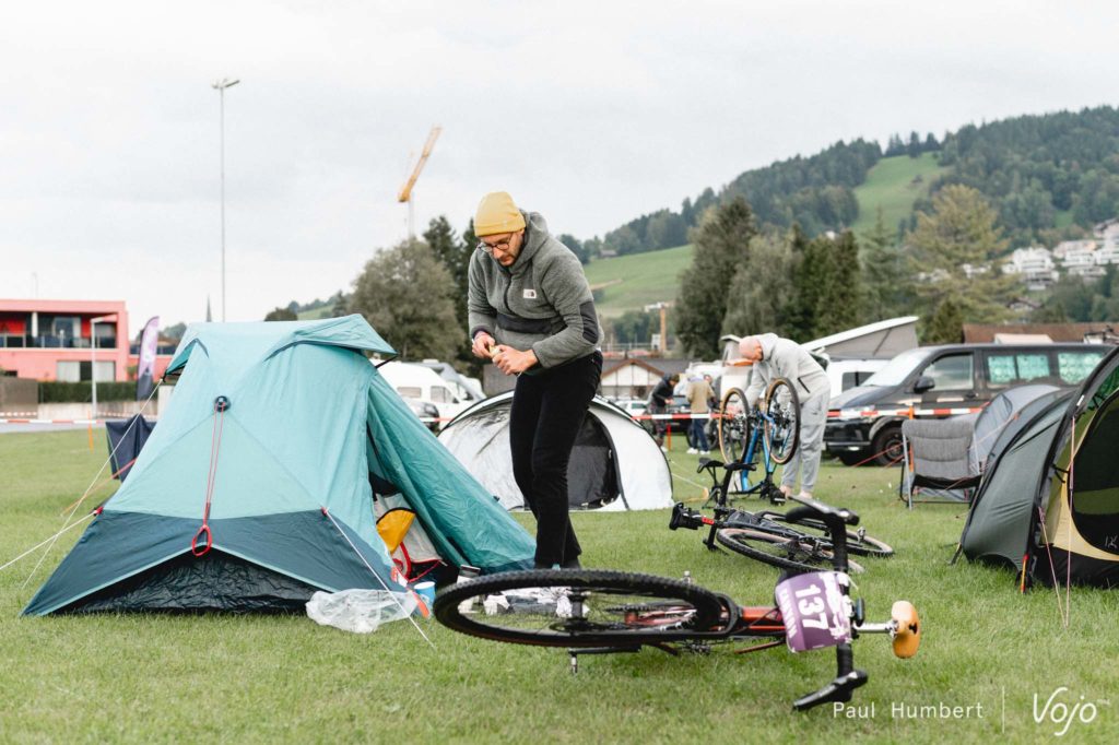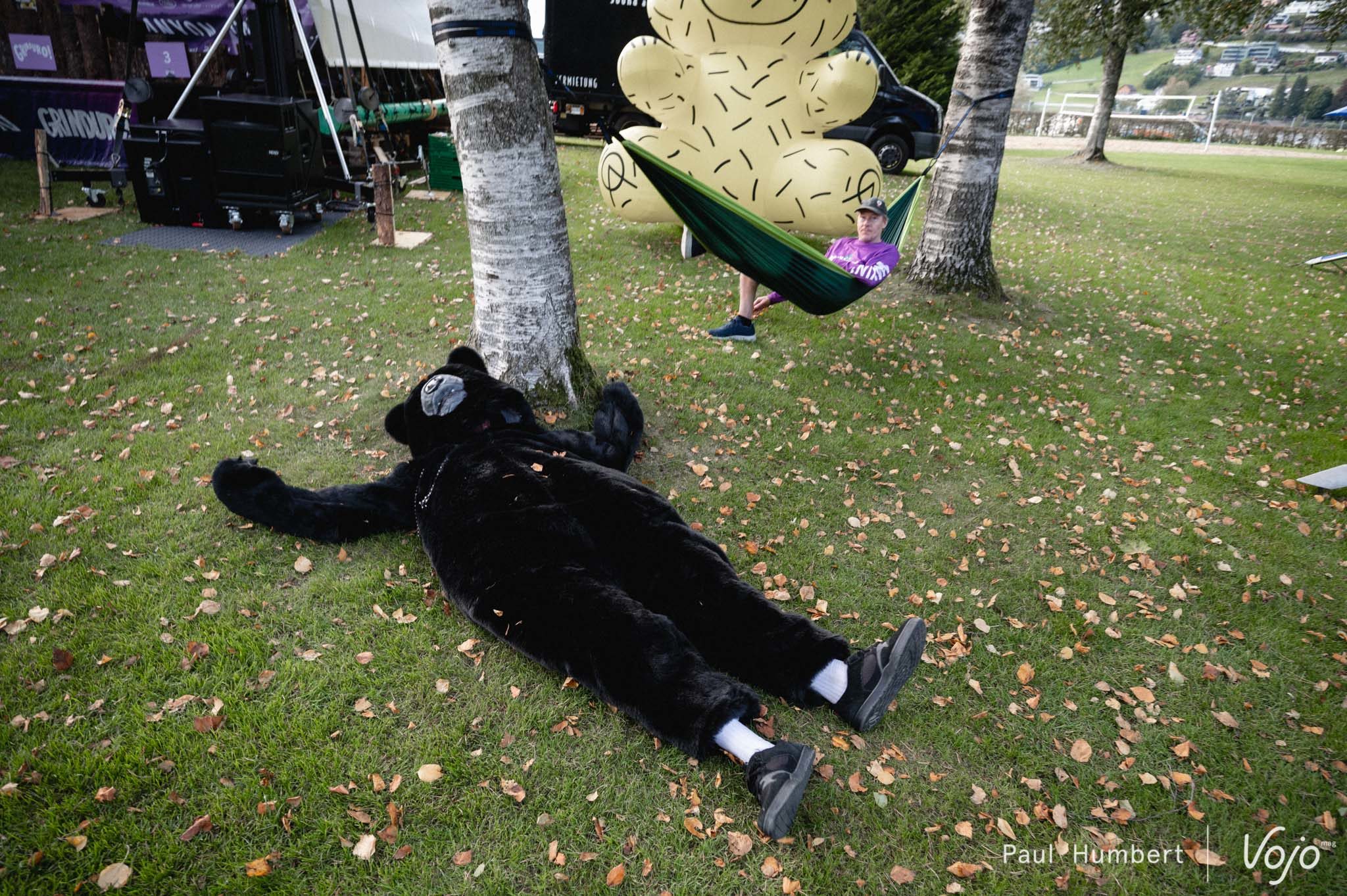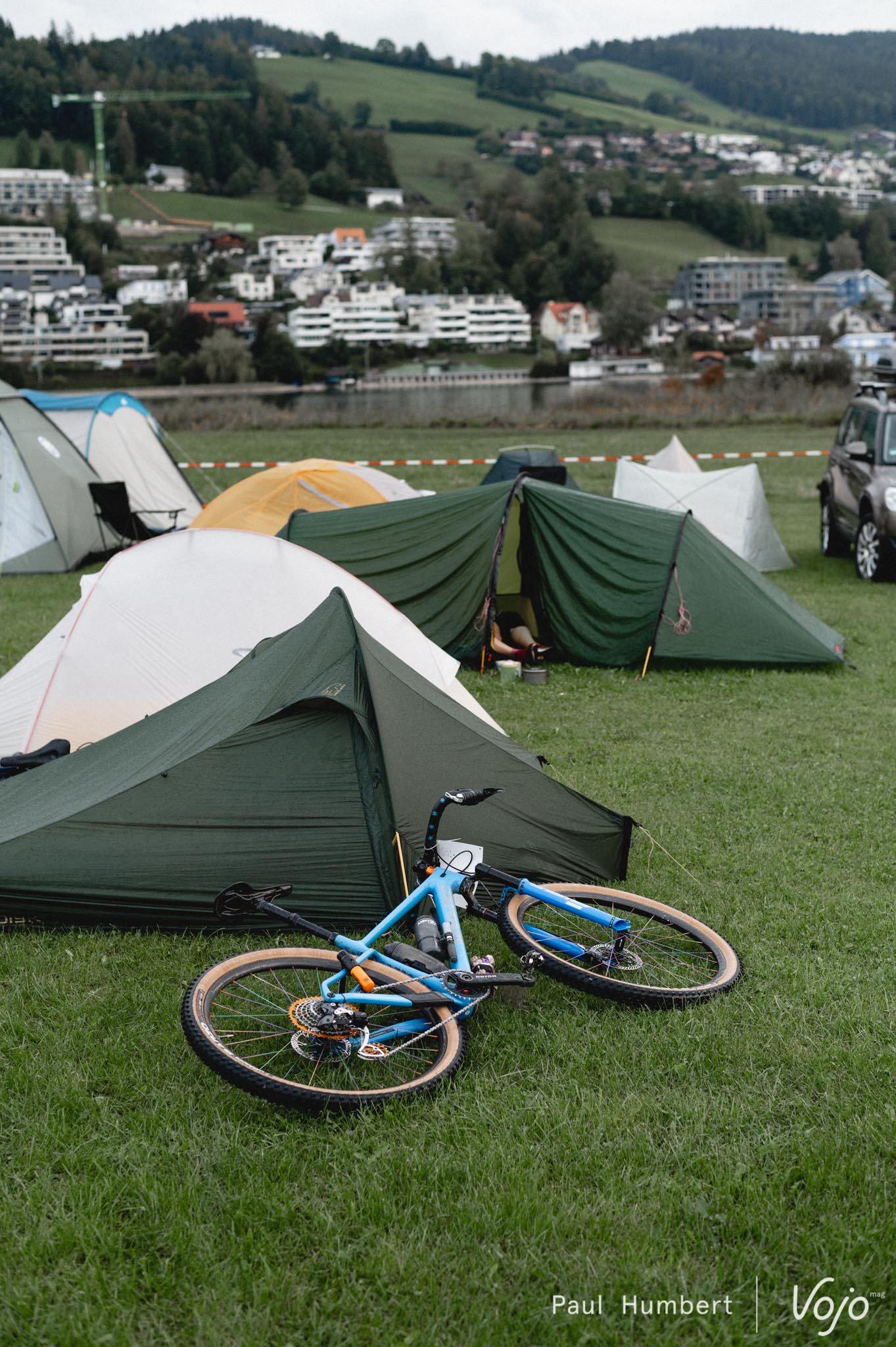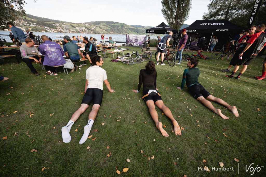 Retour à Unterägeri où il est temps pour nous de partir sur le prologue. En effet, les Grinduro s’étendent maintenant sur tout un week-end : un prologue le vendredi après-midi pour s’échauffer, le « plat de résistance » le samedi et une sortie conviviale tous ensemble le dimanche matin pour terminer l’évènement sur une note chaleureuse. Au milieu de tout ça, des concerts, des animations sur les stands des partenaires… Le circuit Grinduro s’est donné pour devise « The perfect party-to-race ratio ! » et si c’est bien une course, avec un classement, qui sert de base à l’évènement, on est aussi (qui a dit surtout ?) là pour s’amuser !