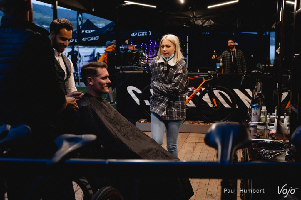 En attendant, c’est retour sur le site du Grinduro. Le lieu s’anime au fur et à mesure des arrivées et prend doucement des airs de festival en fin d’après-midi. Un coiffeur/barbier s’est installé sur le stand Canyon, une exposition de belles montures en acier s’étend sur tout le salon, Komoot a ouvert son bar…
