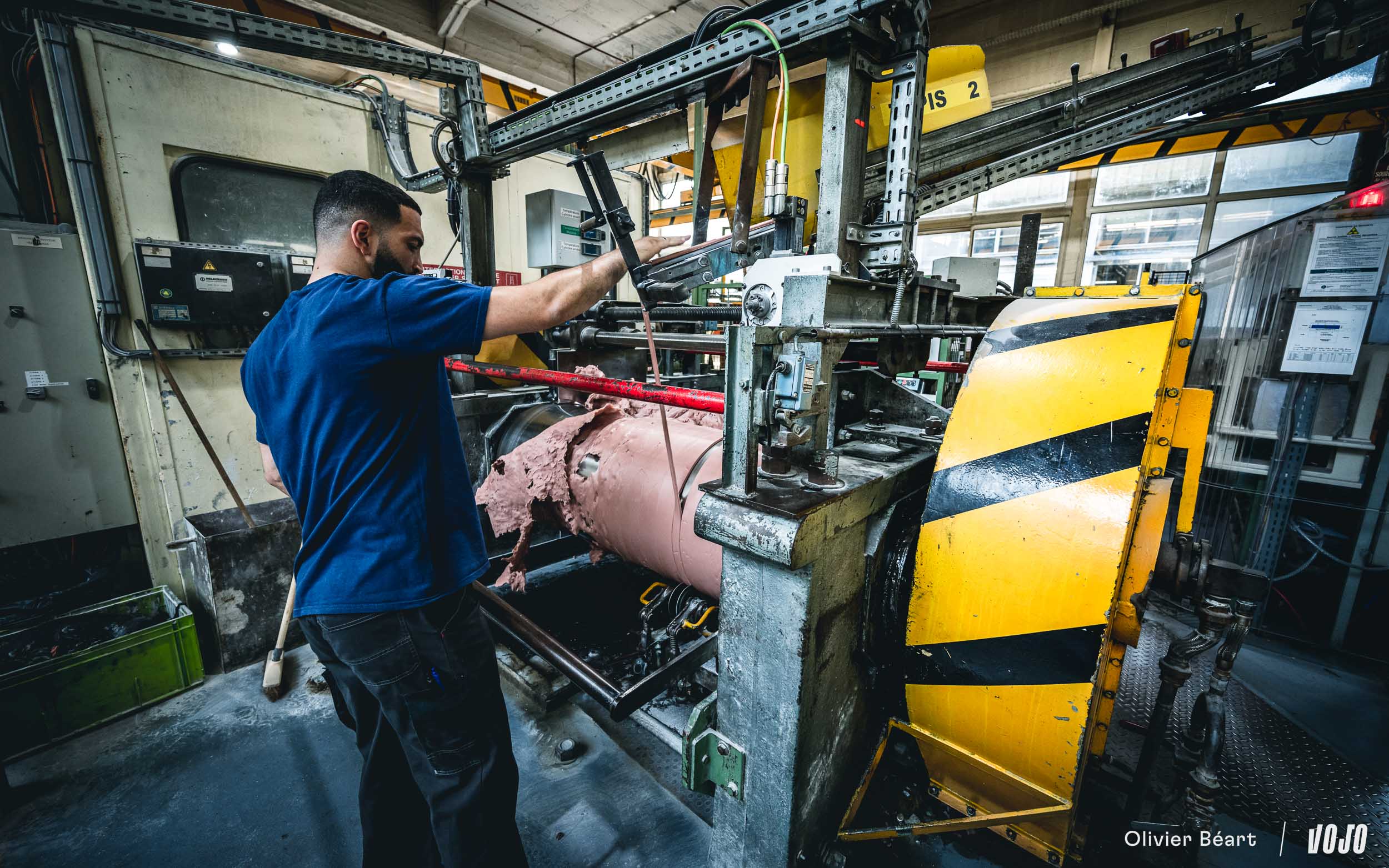 On fabrique des pneus ici depuis 1870 et, si les matériaux et les techniques ont bien évolué depuis, lors de notre visite, nous avons encore rencontré des machines quasiment centenaires.