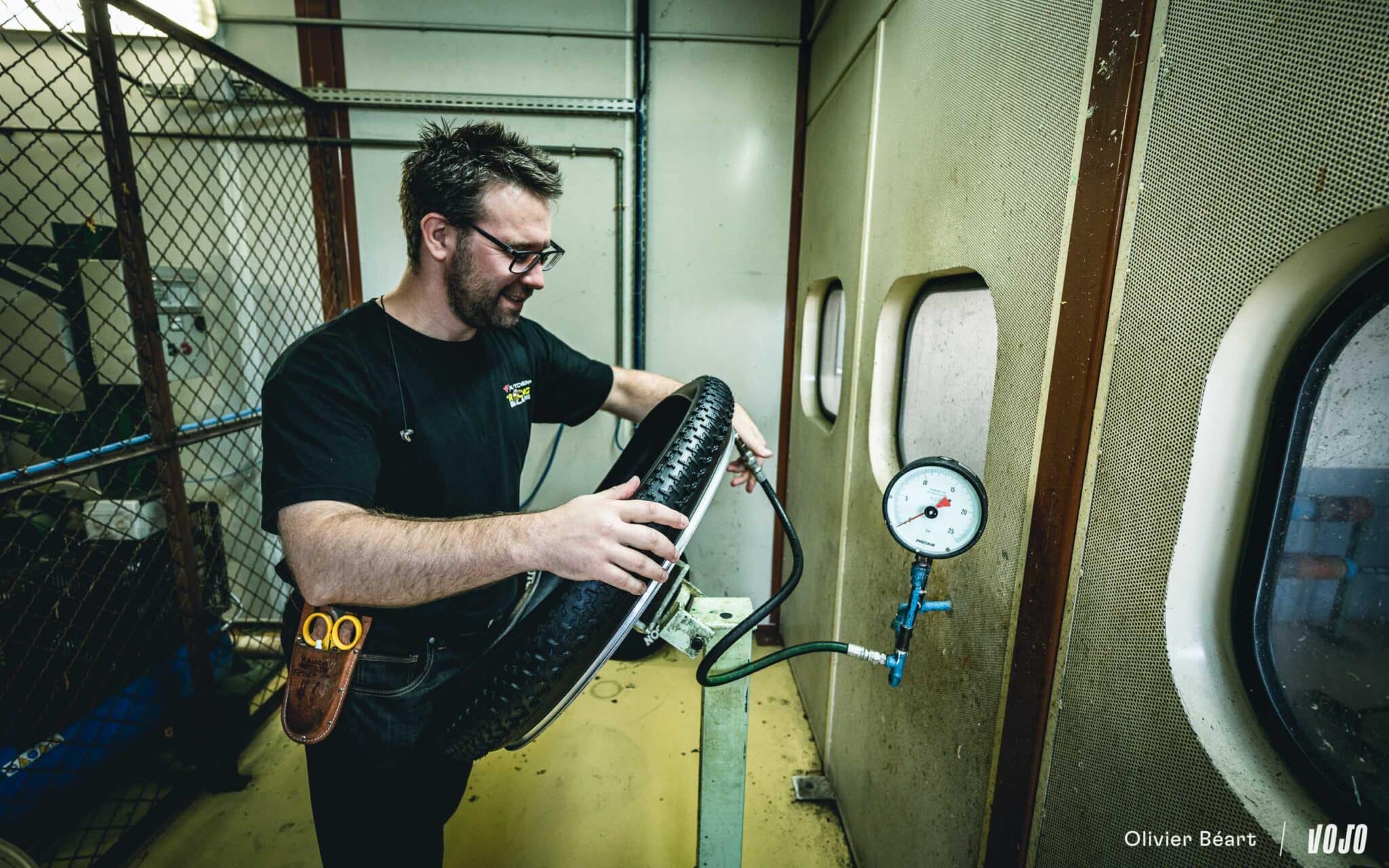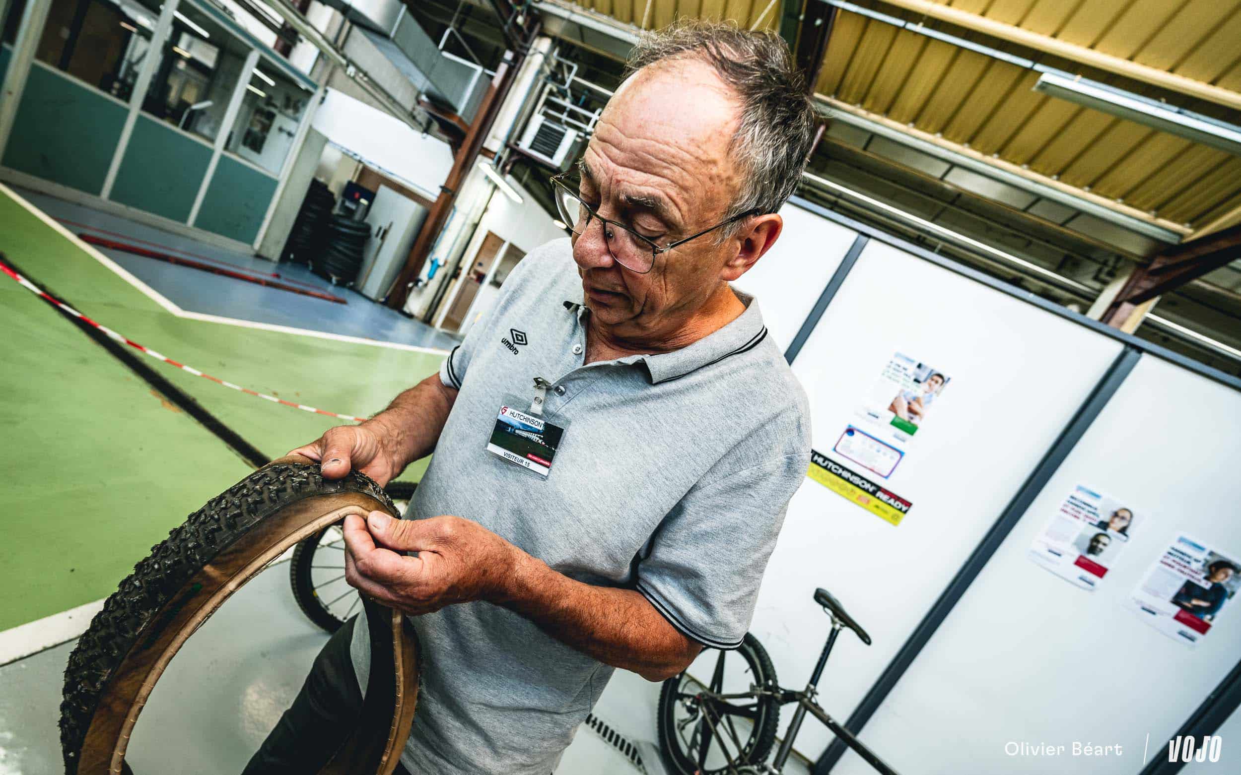 « Les premiers essais n’étaient pas vraiment concluants. Nous étions allés dans le Ventoux, et on rebondissait de partout. Alors, on a modifié les carcasses, on a fait en sorte de vraiment pouvoir baisser en pression pour rouler à moins de 2 bars. Le pneu était lourd, mais même les compétiteurs fans de poids ont vite été conquis. Je me souviens, un des premiers teams à l’avoir roulé en course était l’équipe Orbea sur Paris-Roubaix VTT. Ils étaient parmi les seuls à ne pas avoir crevé et leurs deux coureurs belges (Patrick Trévisan et David Galle, NDLR) avaient fait un doublé si je me souviens bien ! Je suis aussi assez fier que nous ayons réussi à faire des pneus à tringles souples qui tenaient la montée à 4 bars de pression nécessaire pour faire claquer les tringles au montage, alors que Michelin était resté sur des tringles rigides. »