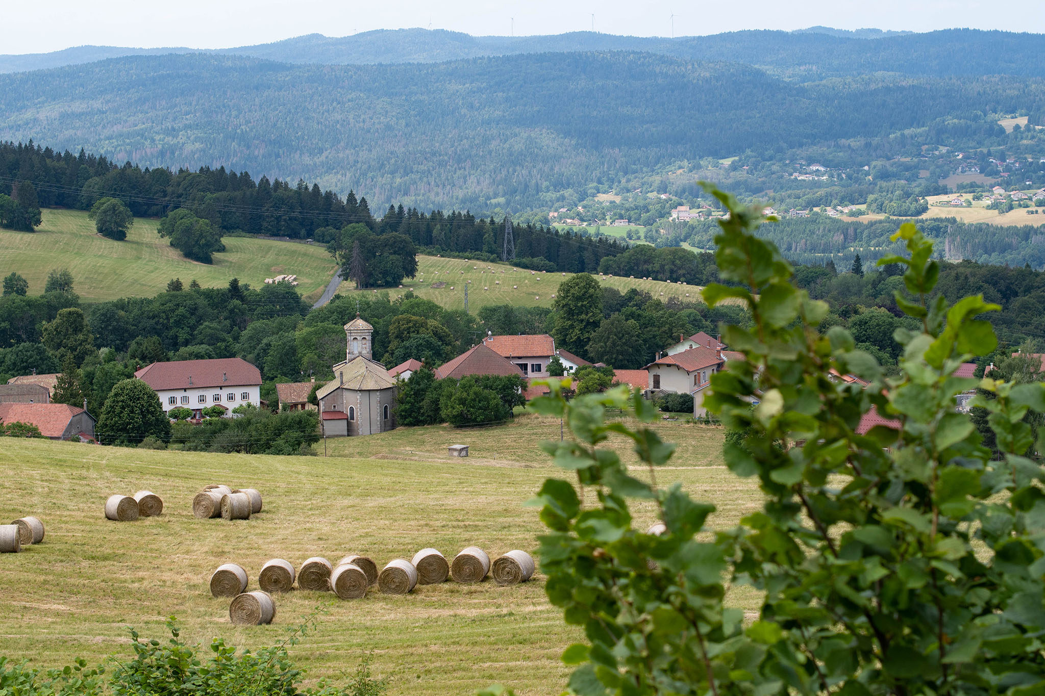 A Champfronier, je veux jouir une dernière fois de la vallée enchantée. Alors que je sillonne la route du col, les rayons du soleil inondent tout le massif : la lande du Jura resplendit et scintille. Au sommet, je roule autour des sapins qui succèdent aux épicéas culminant à plus de 1000 mètres d’altitude : les arbres sont d’étonnants altimètres. Les kilomètres défilent à travers les belles courbes des monts.