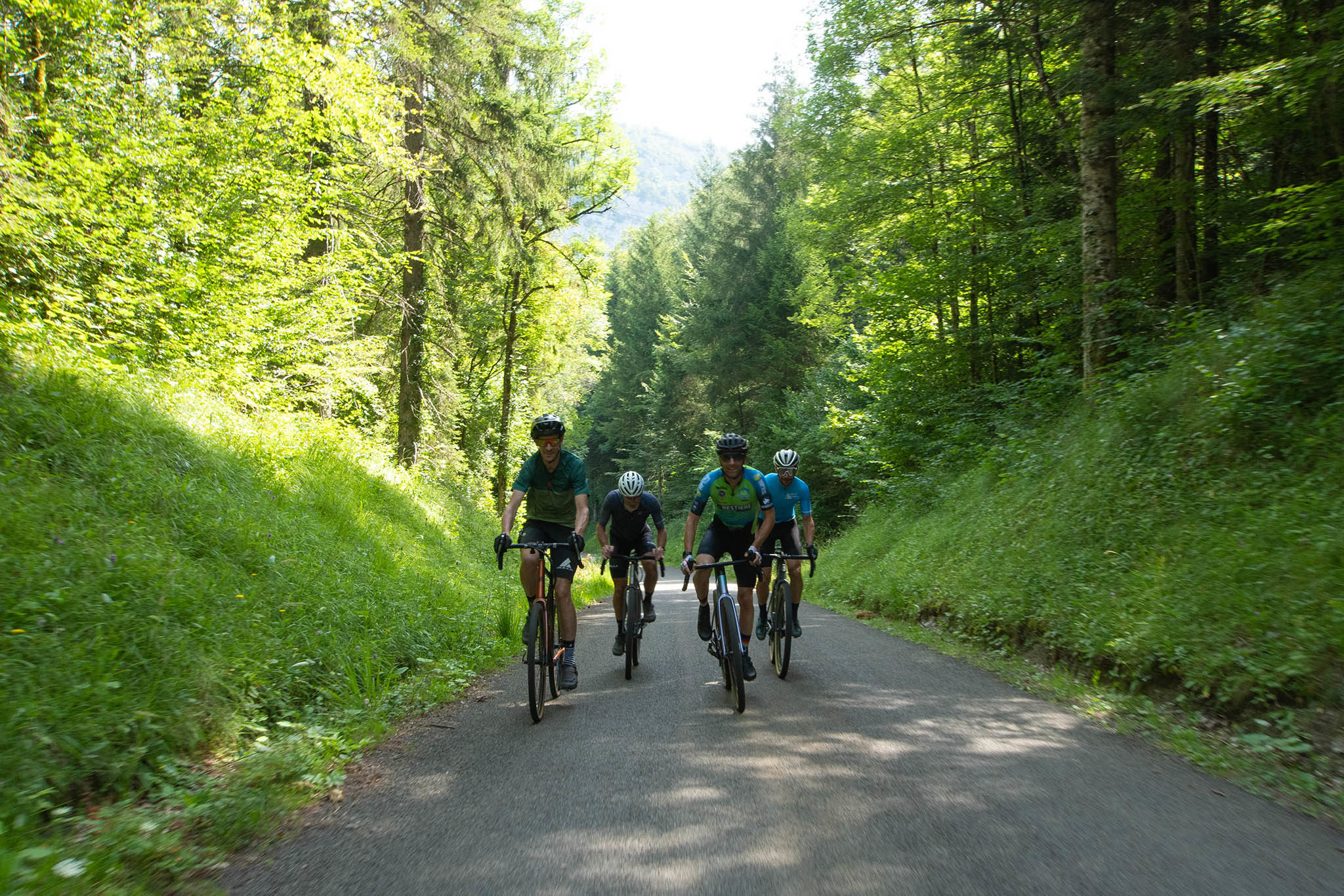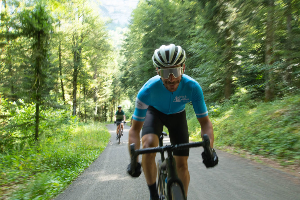 L’itinéraire qui descend vers Giron est superbe. Il me gratifie d’une jolie route à travers la forêt. Le Jura ne laisse pas le voyageur insensible face à son paysage et à sa sauvagerie. Avec mon gravel, je termine de parcourir les courbes harmonieuses des montagnes de ce pays envoûtant que la Forestière met si bien en valeur.