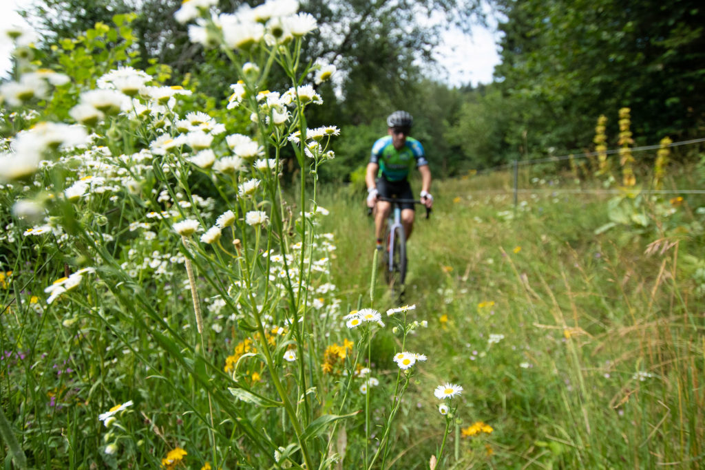 Les kilomètres parcourus sont exigeants et très physiques. Au dénivelé conséquent s’ajoute la difficulté même de la pratique du gravel en montagne : des pourcentages élevés, des chemins pas toujours lisses et des butées contre des racines et des rocs. Sur ce type de terrain, un développement de 40, voire 38 dents à l’avant et une cassette de 10-50 à l’arrière sont recommandés. Lors de la journée de la Forestière, Fred et Arnaud formeront l’équipe des speakers de l’épreuve. Et tel un chef d’orchestre, Pierre à la régie, transmettra en direct les images et le son qu’aura capté Thomas Dietsch sur son e-bike en suivant les ténors du XC Marathon.