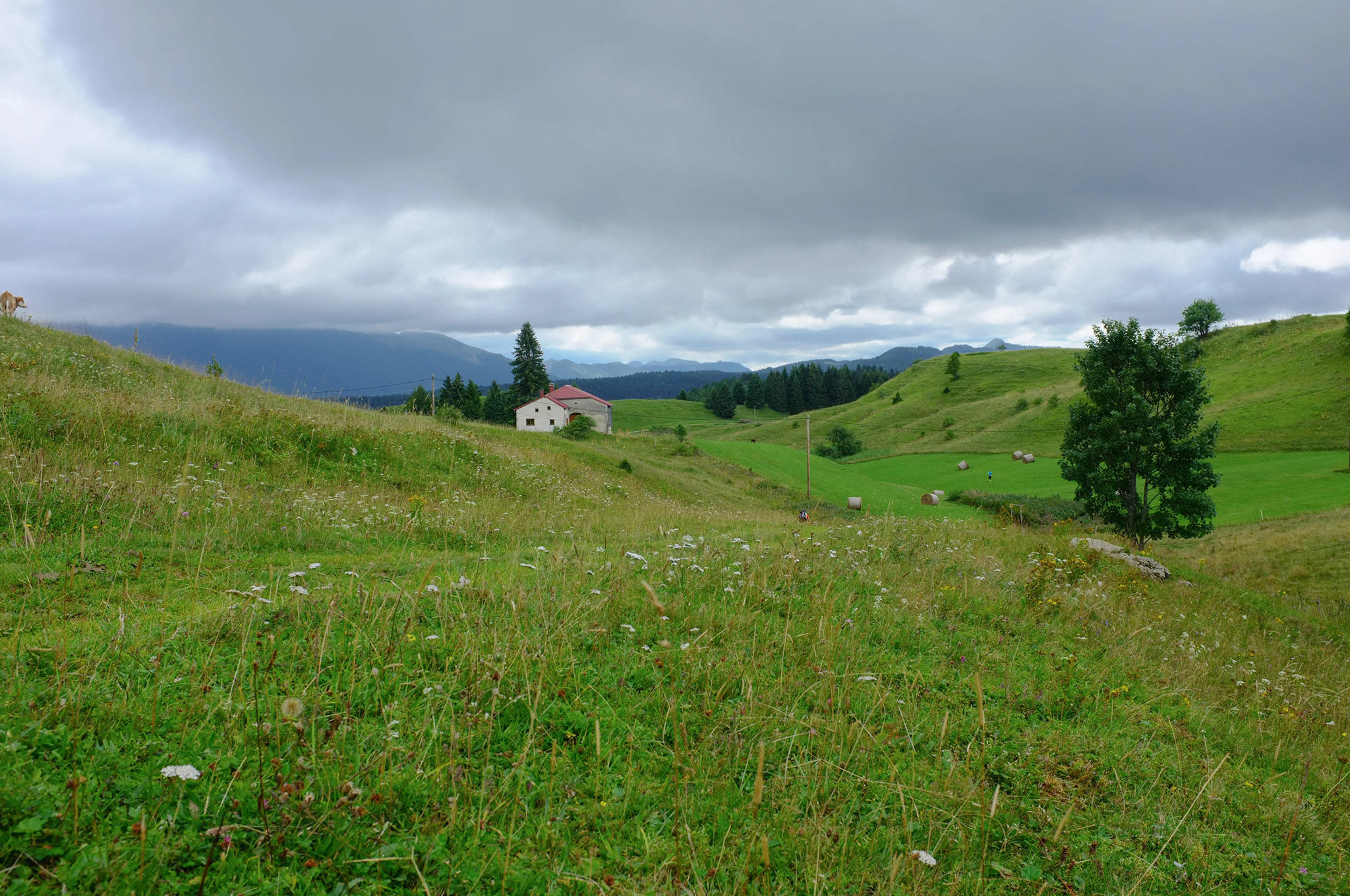Peu après cette halte bienvenue, je rencontre le haut plateau. Je ne peux que suivre cette trace royale de la Forestière. Après les coups de butoir de la matinée sur ces chemins de roc, tout y est doux maintenant. Les pneus de mon bike adhèrent à ce tapis vert et tendre. Je lâche les freins et me dirige vers une ferme située dans son magnifique isolement. J’évolue sur une terre sauvage, la grande plaine me semble sans fin.