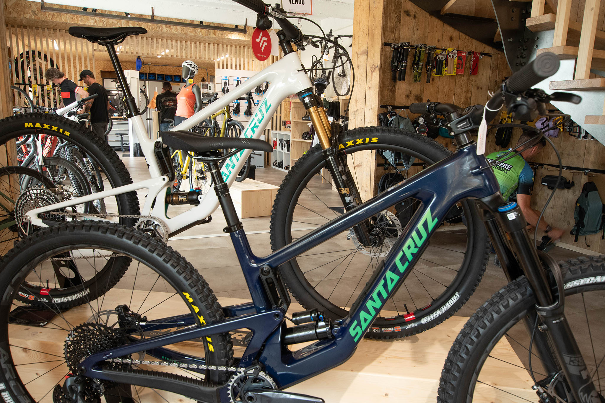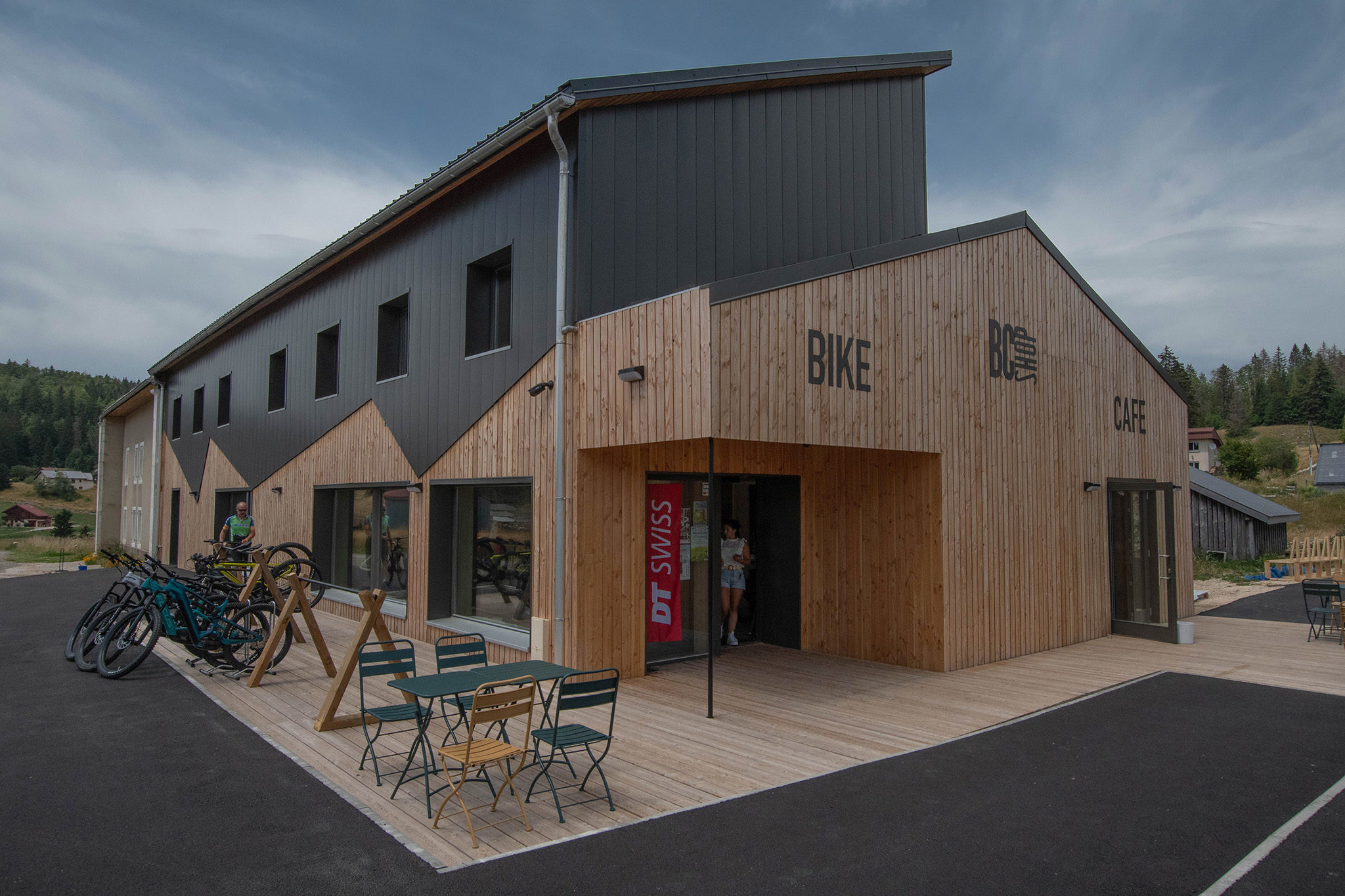 La descente est raide et rectiligne. La magie de ce matériau qu’est le titane colle le Sauvage à la route. A Saint-Claude, nous embarquons dans la camionnette afin de nous éviter la longue ascension du col de Magnard. A Lajoux, François nous présente son tout nouveau magasin. BC Shop allie pause-café, atelier et vente de vélos haut de gamme comme Santa Cruz ou Cannondale.