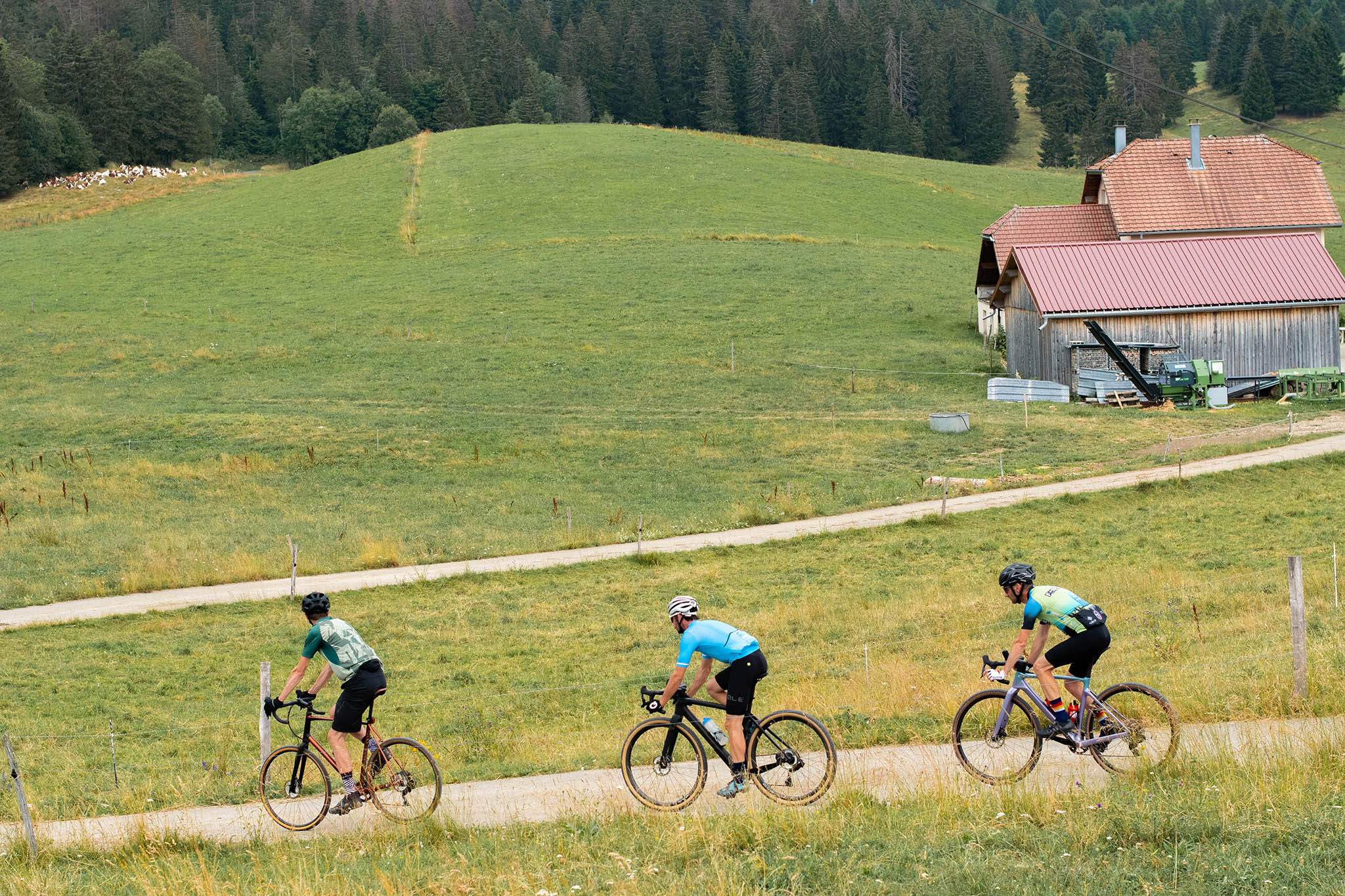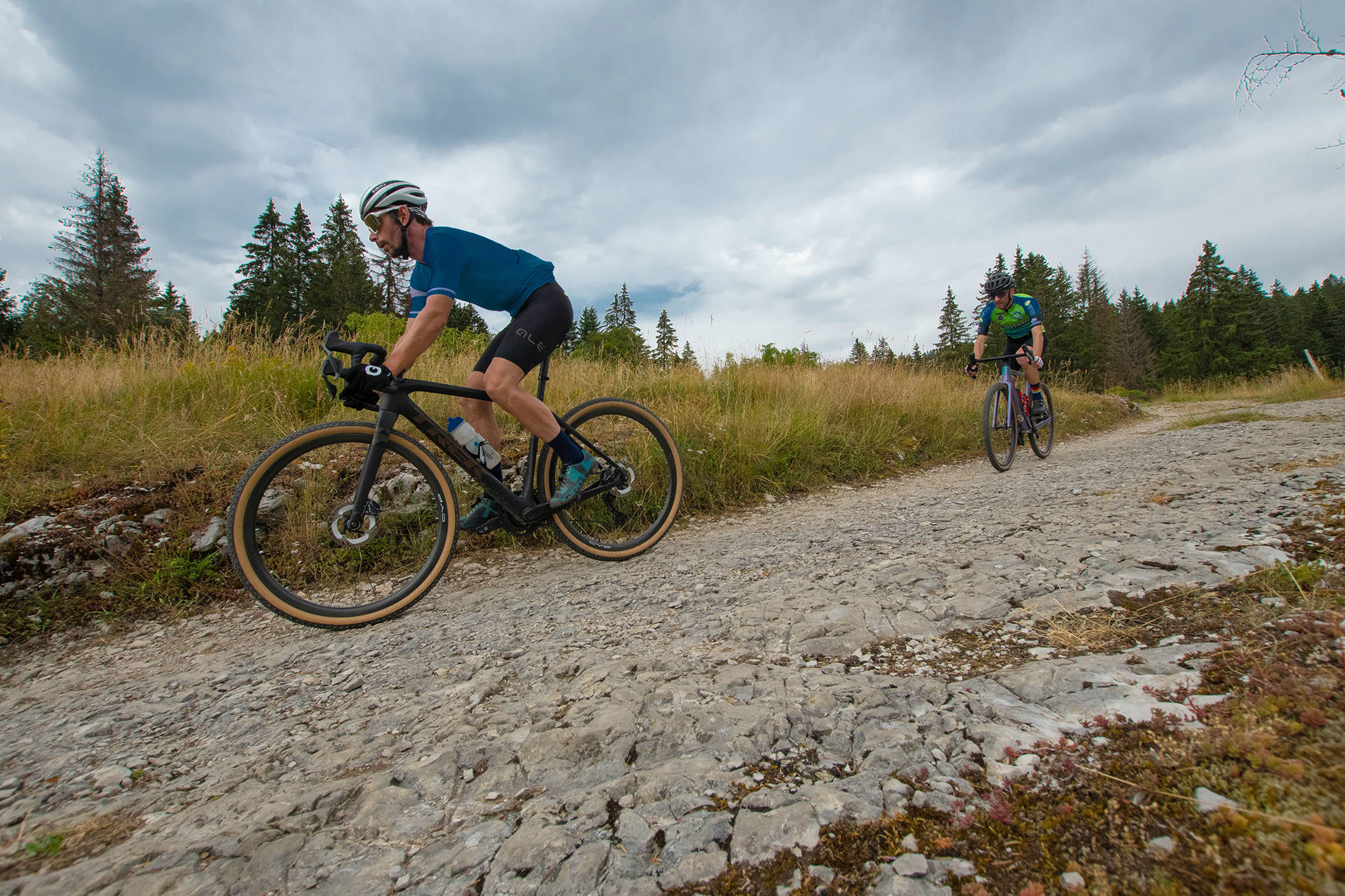En roulant sur ces chemins blancs des plateaux du Jura, le parcours gravel renoue avec les passages historiques de la Forestière, autrefois prisés par les VTT des années 1990 et 2000. Depuis cette époque pionnière, leur évolution technique actuelle a imposé aux organisateurs d’opter pour des parcours nettement plus techniques, ce que ne peut revendiquer la raison d’être du gravel.