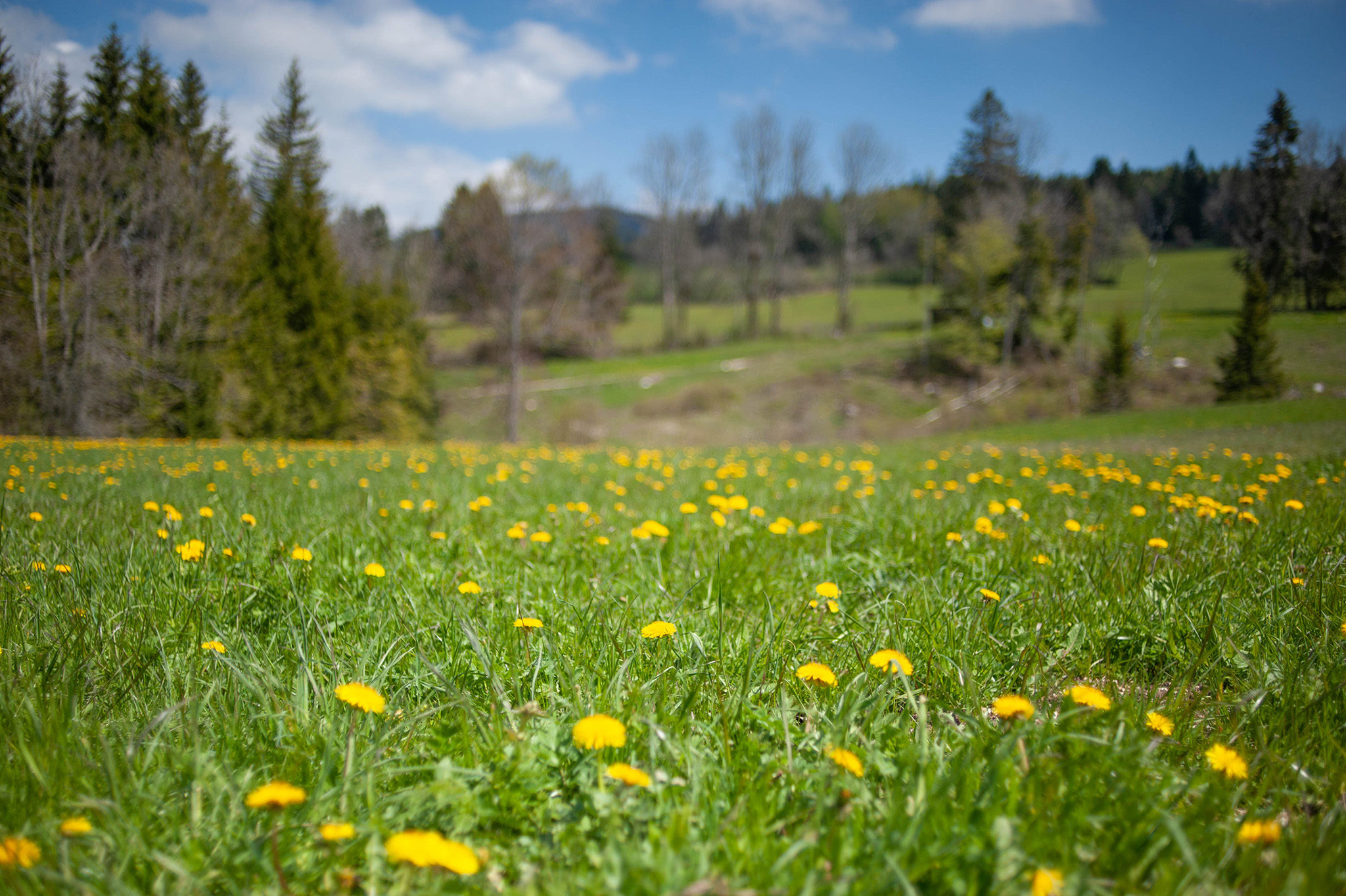Je traverse les anciennes parcelles vidées de toute pierre. Les paysans les ont déplacées pour en libérer le pâturage et créer des murets de délimitation. Un patrimoine que nous traversons via les échaliers qui parsèment le haut plateau jurassien. Je ne roule plus, je glisse sur la prairie florée de gentianes.