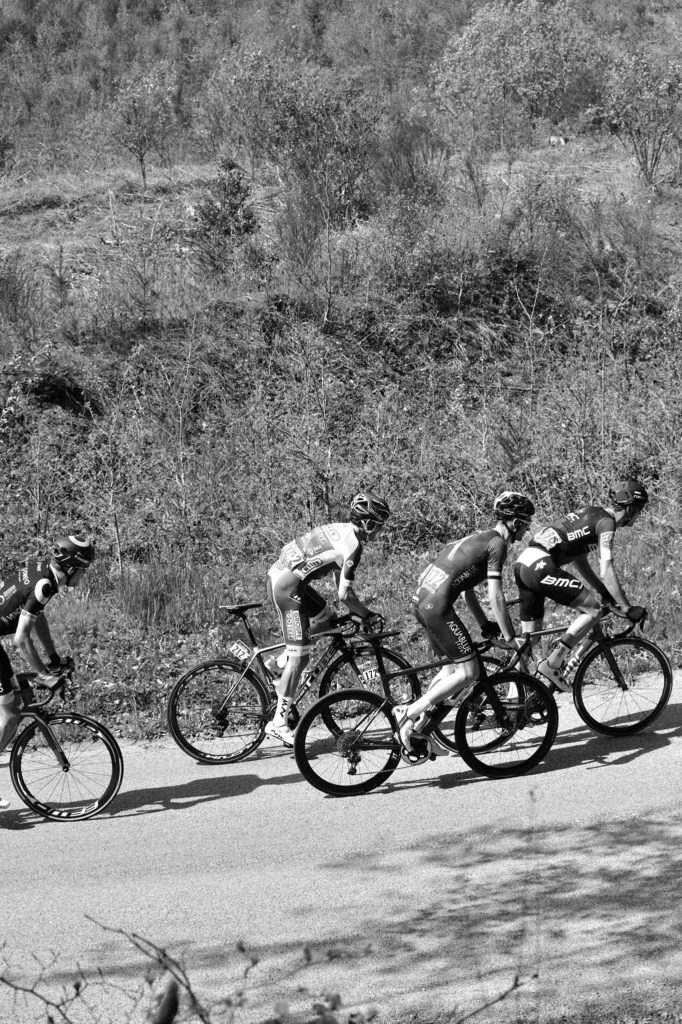 Tandis que nous nous reposons sur les rives de la rivière, les routiers en fin de matinée filent vers Bastogne pour un baroud de 260 km… Après les courses rapides comme Milan-San-Remo ou Paris-Roubaix, leur rythme est différent. Les plus petits développements, obligatoires pour passer les bosses, s’enchaînent aux plus gros, nécessaires pour rouler vite dans les fonds des vallées : un terrain idéal pour les puncheurs, les coureurs au gros cœur. Pourtant, durs au mal et la tâche, les Flamands ne s’y retrouvent pas dans Liège, la latine. Comme si le gris des pavés des monts de Flandre et le noir de la poussière à Roubaix leur étaient réservés.
