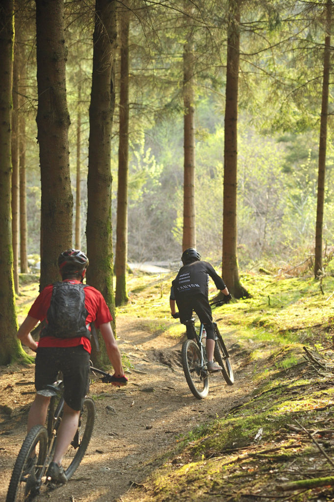 Nous filons et apercevons à travers les fûts des épicéas le beau lac de Coo, si bleu en ce mois d’avril. Le bois de Stalons est une ode à la vie sauvage : au hasard d’une rencontre, nous apercevons les cerfs et biches se déplaçant en hardes. Sur le chemin arboré de hêtres, nous rejoignons l’Amblève qui dessine un sillon à travers le vieux massif ardennais. Depuis la nuit des temps, la pierre et l’eau s’y sont heurtées, creusant des vallées encaissées qu’apprécient les enduristes du coin : Ninglinspo, Chefna sont leur terrain de légendes.