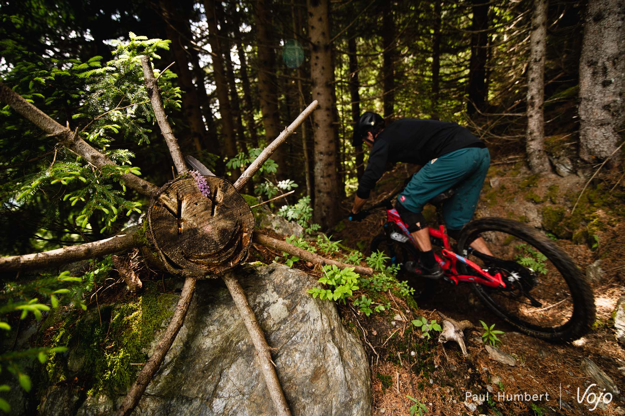 Les sentiers justement, il ne sortent pas de nulle part ! Le massif du Beaufortain investit depuis plusieurs années dans la création d’itinéraires VTT enduro et c’est Alex Kociemba, dit l’indien, qui officie en tant que « shaper ». Amateur de belles traces, il laisse sa marque sur les sentiers en les bordant de petites sculptures que seuls le yeux attentifs pourront repérer.