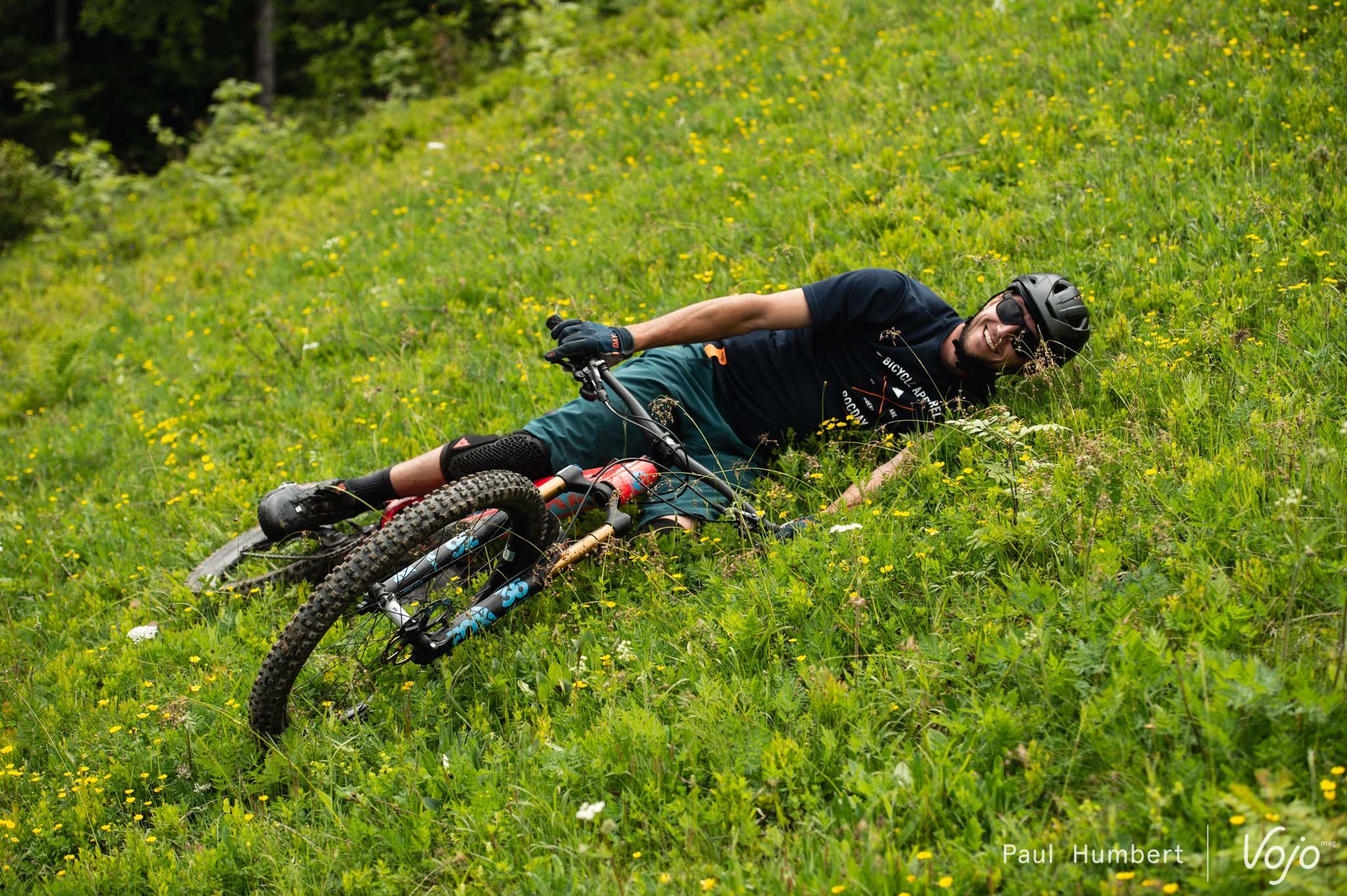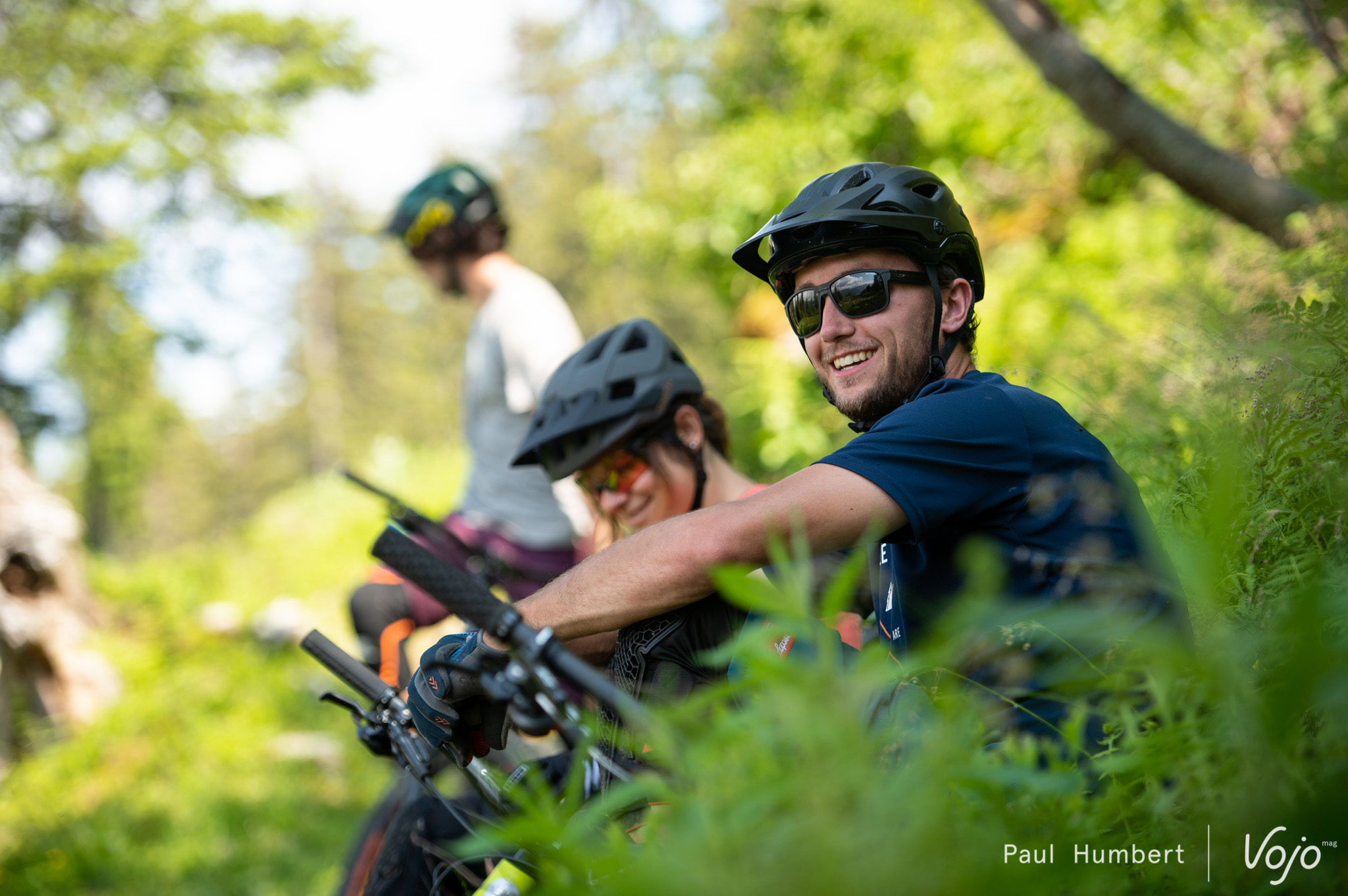En bas, Olivia ronge son frein en nous attendant, espérant que tout se passe comme prévu. Récompensée par nos sourires et l’envie de remonter aussi vite que possible, elle nous accompagnera d’ailleurs pour un des plus beaux rides de nos deux journées. Démarrant dans les pins et la bruyère, on plonge dans la pente et la terre avant d’attraper les portions rapides et rocailleuses nous menant à l’arrivée et à notre barbecue.