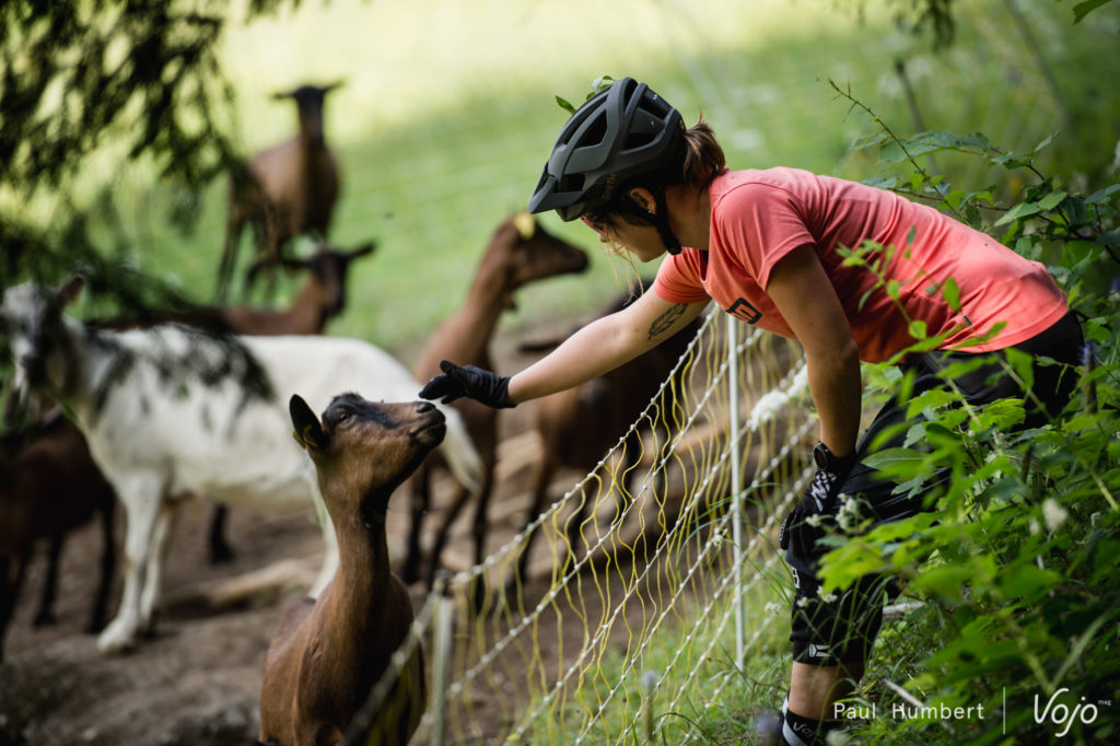 Excités par l’altitude ou l’odeur du Beaufort qui mature à quelques mètres du centre du village, nous intégrons une petite équipe prête à mettre Olivia à l’épreuve pour une de ses premières journées « tests ». Passionnée de VTT, Olivia a quitté son travail pour se lancer corps et âme dans cette activité estivale au sein d’un massif où elle a élu domicile il y a 4 ans.