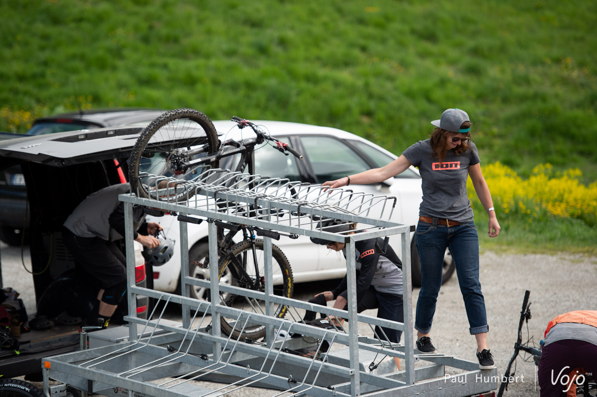Première étape du baptême du feu d’Olivia, accrocher nos vélos. Quelques jours avant de recevoir le beau camion qui lui servira de navire amiral, nous lui laissons l’occasion de se faire la main sur nos vélos en les accrochant à la remorque qui sera également de la partie tout l’été. 27,5, 29 pouces, gros pneus, petit pneus, Olivia passe l’épreuve avec brio.