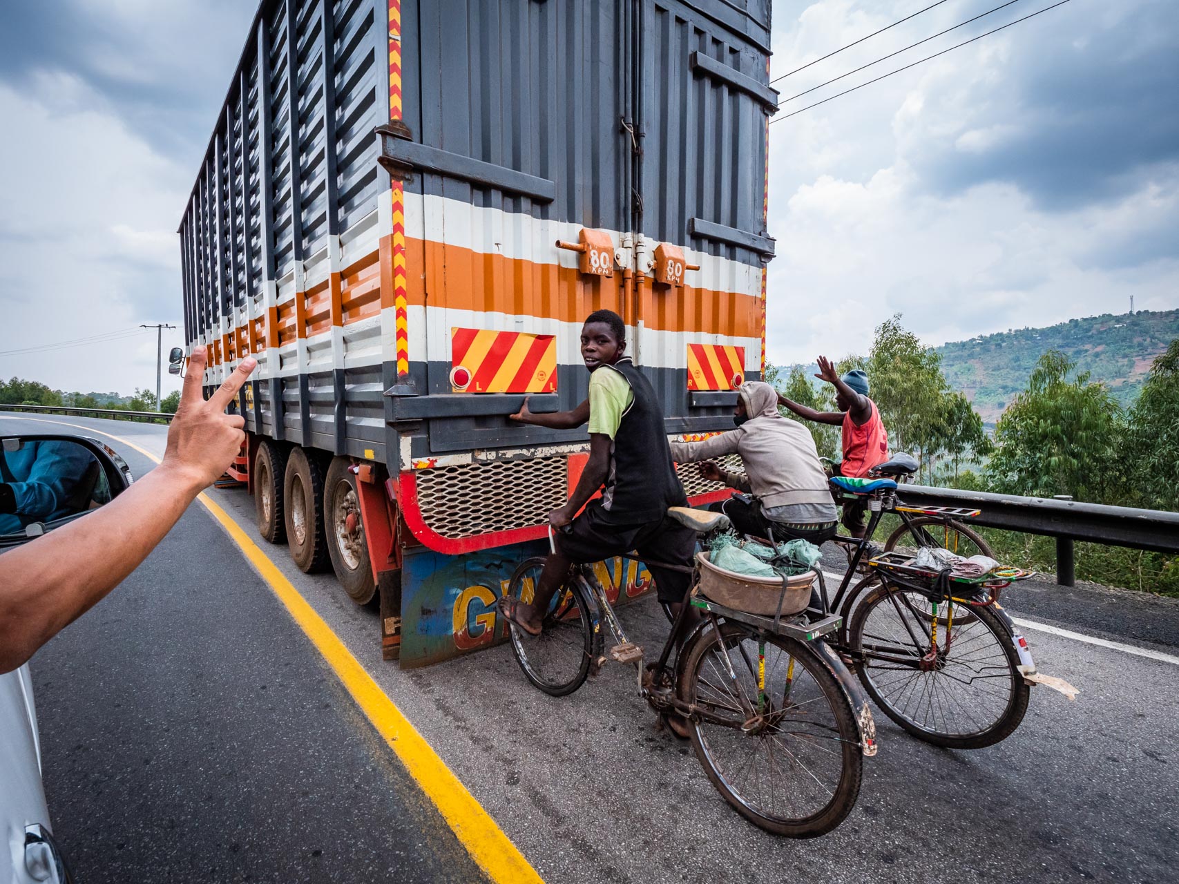 Ce bombardement sensoriel 24 heures sur 24 et 7 jours sur 7 provient de tous les aspects de la vie rwandaise – des foules enthousiastes que nous rencontrons sur les sentiers et des routes chaotiques avec ses camions polluants que nous croisons sur notre chemin.