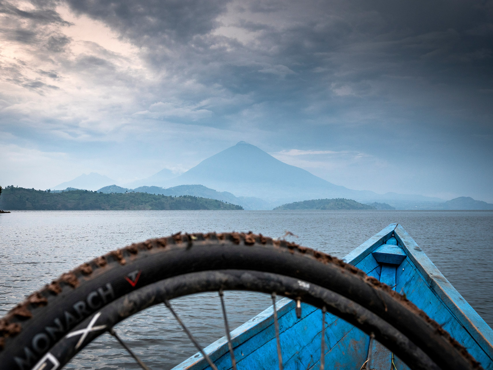 Chaque matin, nous chargeons nos vélos sur un bateau au plancher plat pour un trajet jusqu’aux rives de Burera qui clapotent paisiblement ; nous apprécions ces vingt minutes de calme avant que le chaos ne commence.