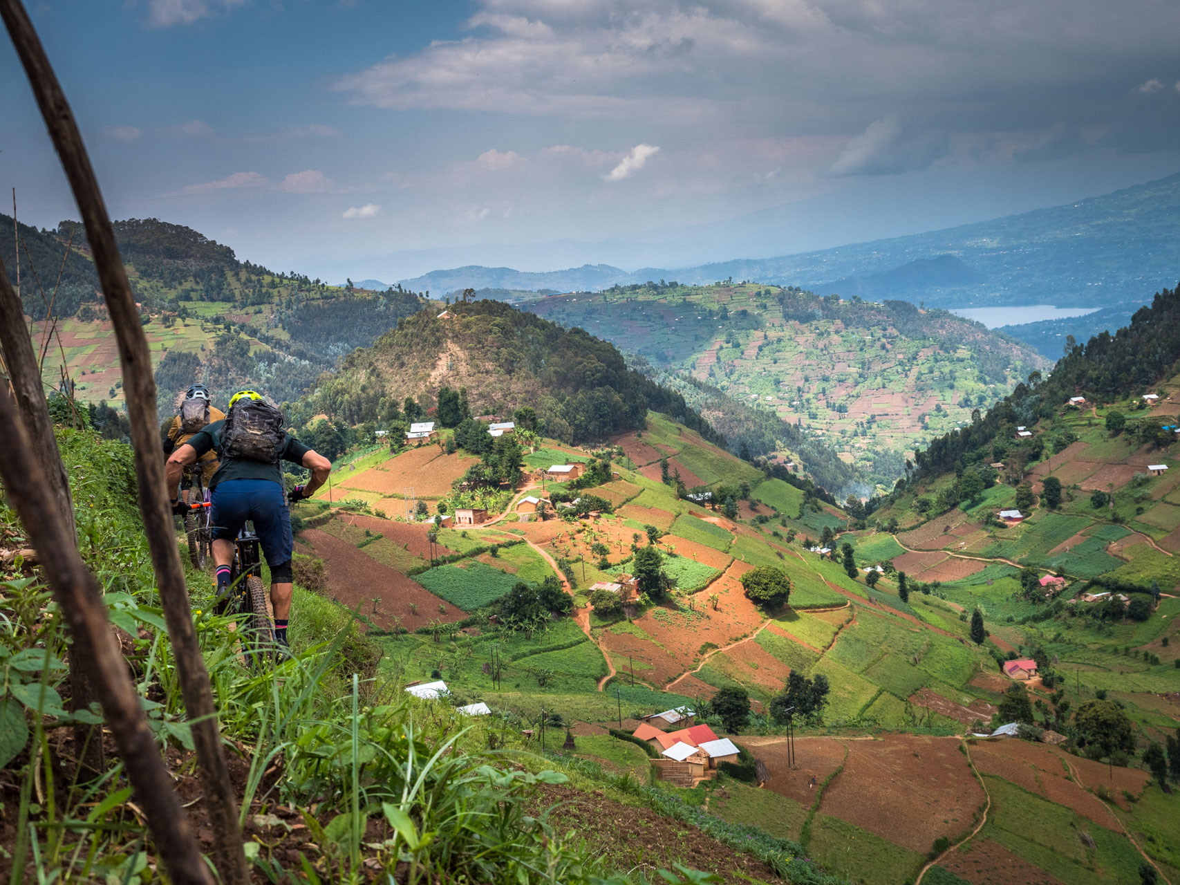 Dès notre premier coup de pédale, la petite ville de Burera s’avère être une mine d’or de singletracks. De longues descentes sinueuses se succèdent sans difficulté sur des flancs de collines en gradins. Rapide et fluide, il est facile de se laisser bercer par une fausse impression de sécurité, jusqu’à ce qu’un ruisseau d’un mètre de large apparaisse soudainement sur le chemin devant vous. Devoir lever la roue avant en urgence, et les quelques fois où l’on a dû mettre à pied à terre nous rappellent que ce n’est pas un bikepark.