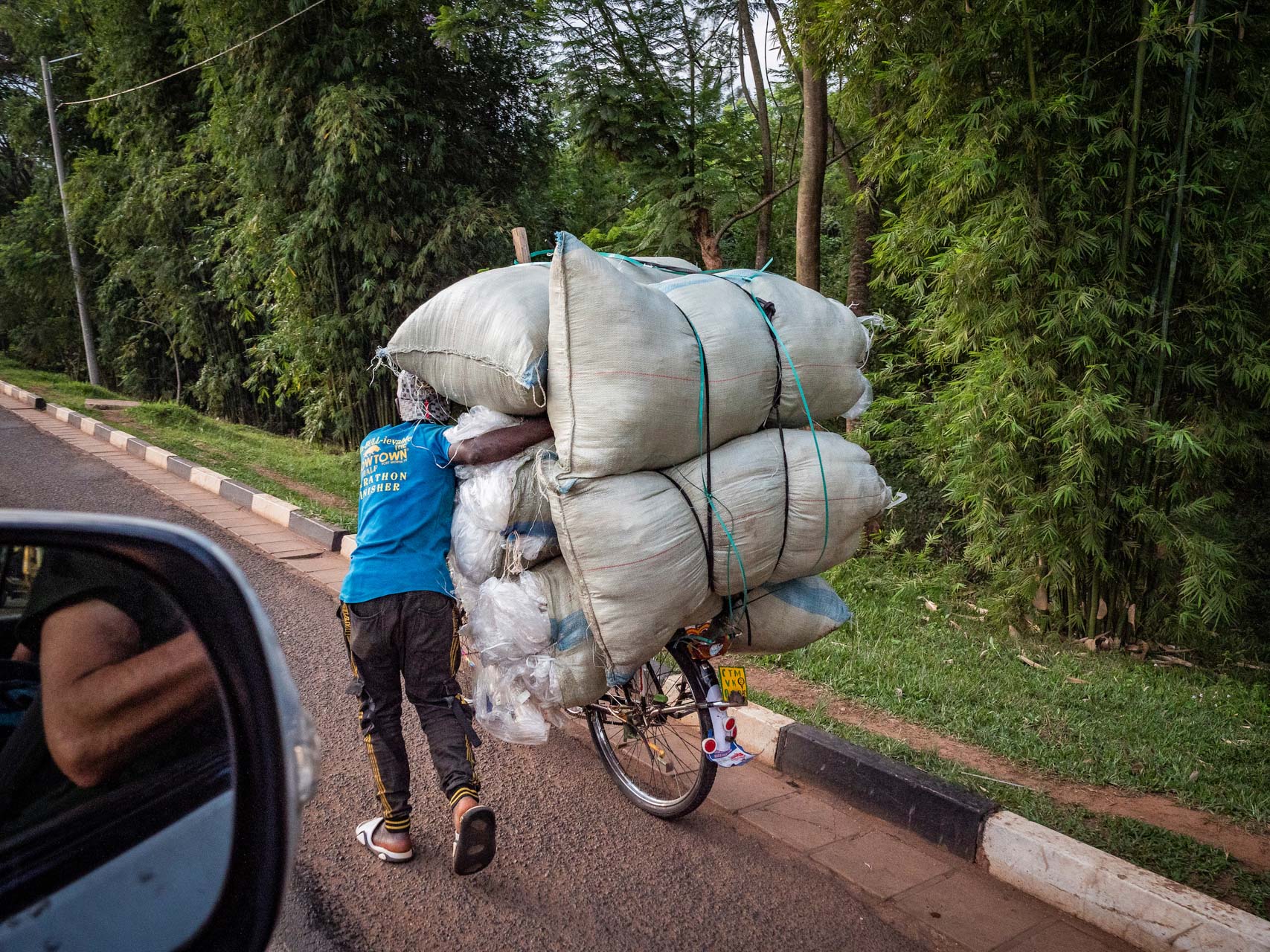 Ce bombardement sensoriel 24 heures sur 24 et 7 jours sur 7 provient de tous les aspects de la vie rwandaise – des foules enthousiastes que nous rencontrons sur les sentiers et des routes chaotiques avec ses camions polluants que nous croisons sur notre chemin.