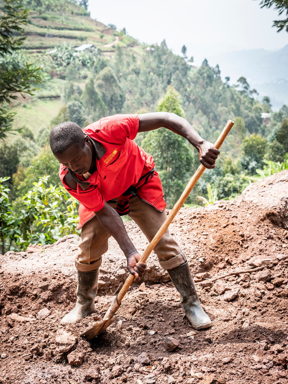 L’Umuganda (qui signifie « s’unir dans un but commun ») est l’une des politiques introduites et appliquées par le gouvernement autoritaire rwandais pour aider à réunifier le pays après le génocide. « Ce n’était pas si populaire quand ça a commencé« , dit Olivier, quand je l’interroge sur ce service obligatoire. « Mais maintenant, les gens veulent le faire pour améliorer les choses« , ajoute-t-il, comme si l’enthousiasme avec lequel les villageois réparent la route endommagée par la tempête ne traduisait pas déjà un réel sens de la communauté et du travail d’équipe.