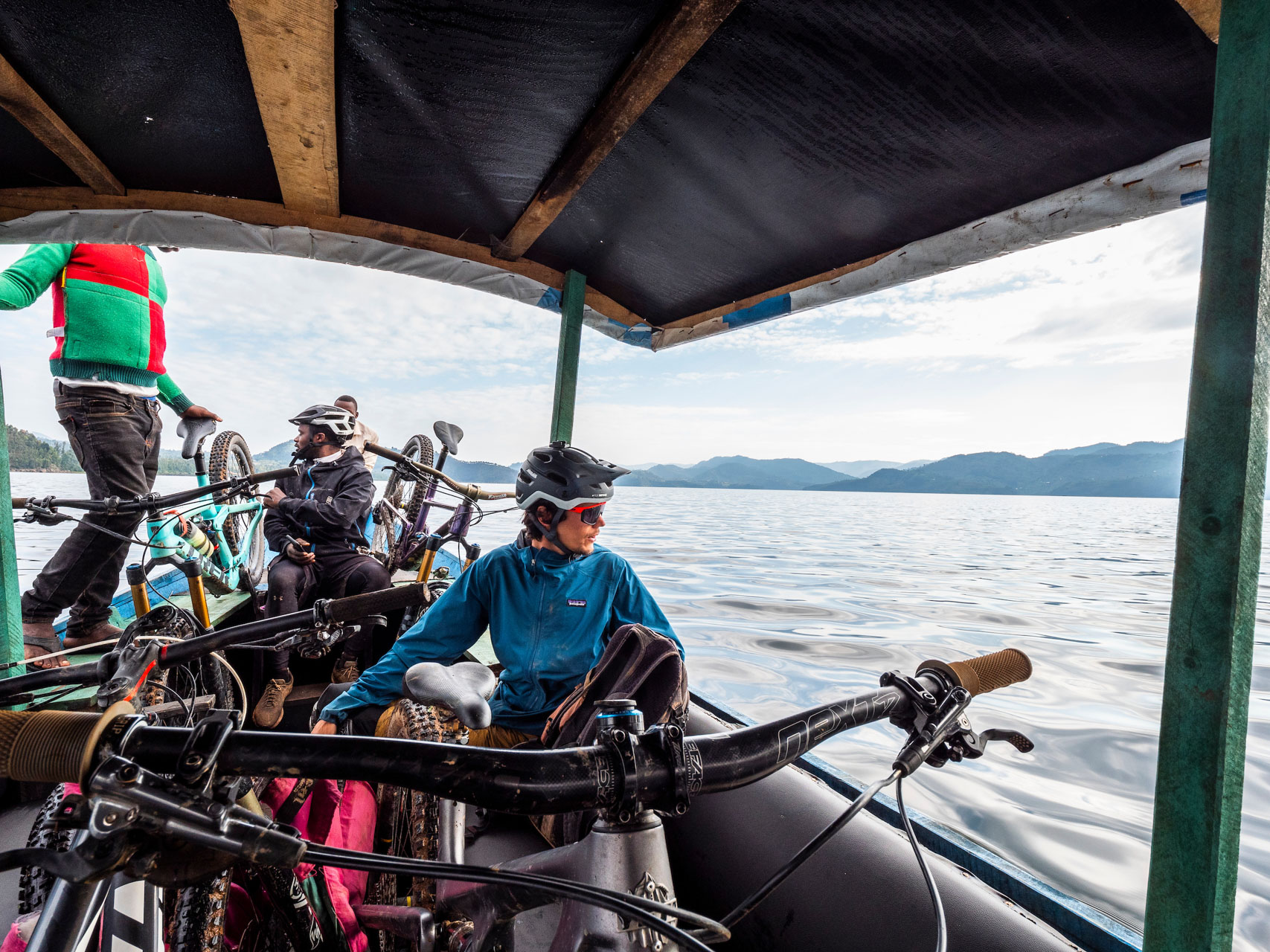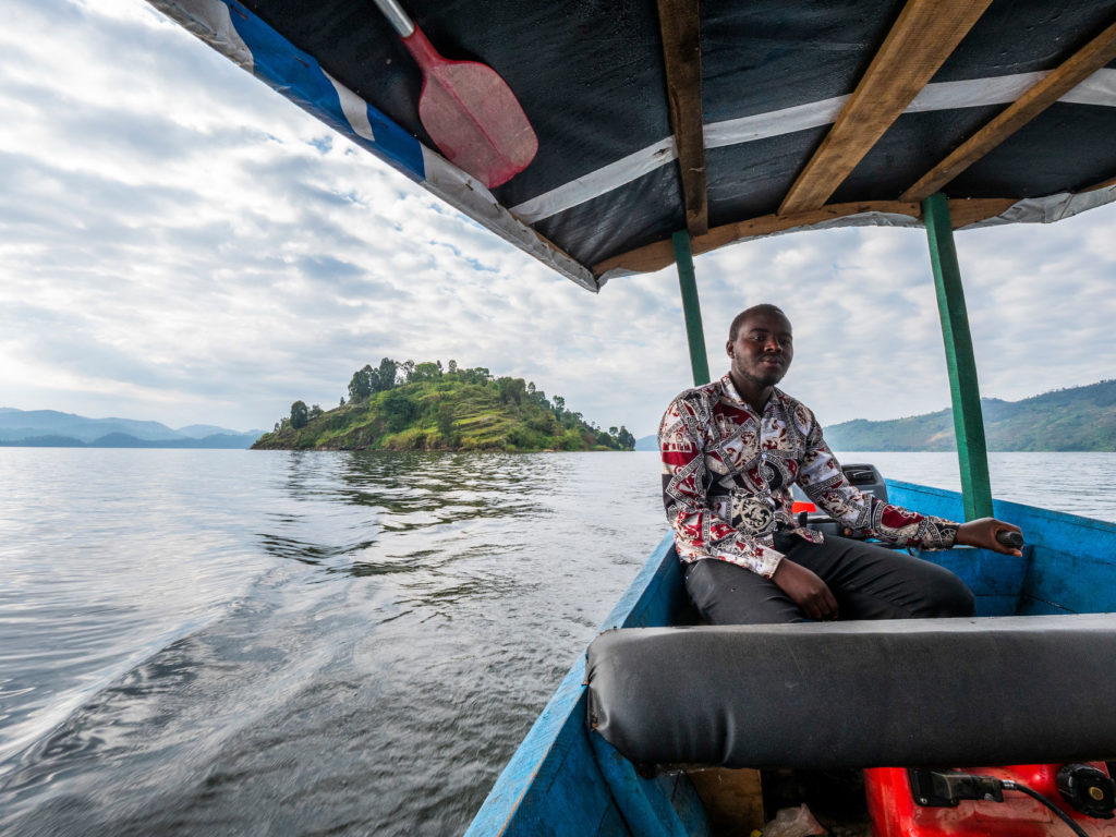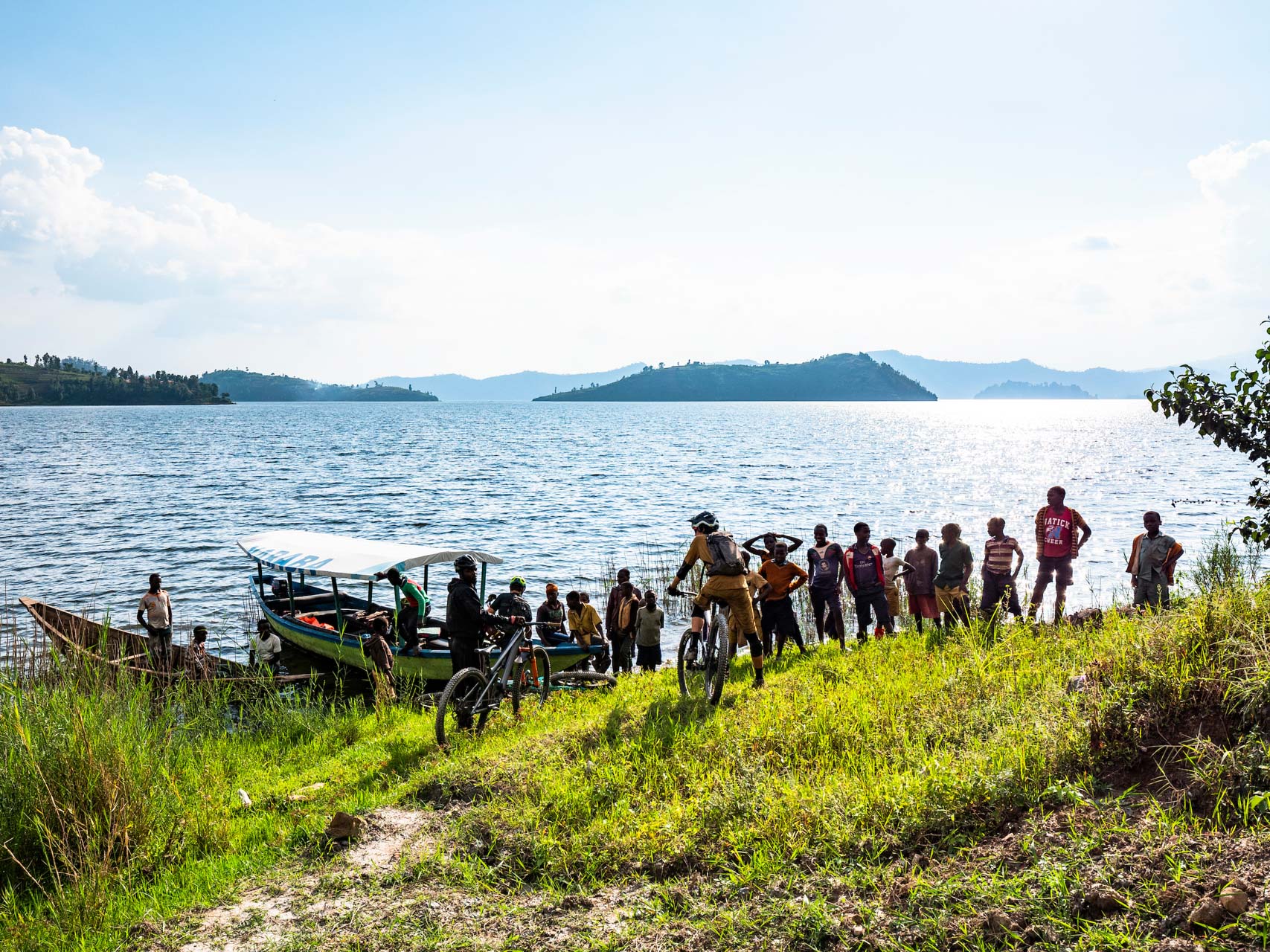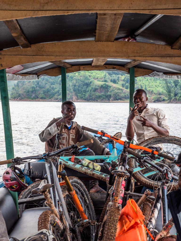 Chaque matin, nous chargeons nos vélos sur un bateau au plancher plat pour un trajet jusqu’aux rives de Burera qui clapotent paisiblement ; nous apprécions ces vingt minutes de calme avant que le chaos ne commence.