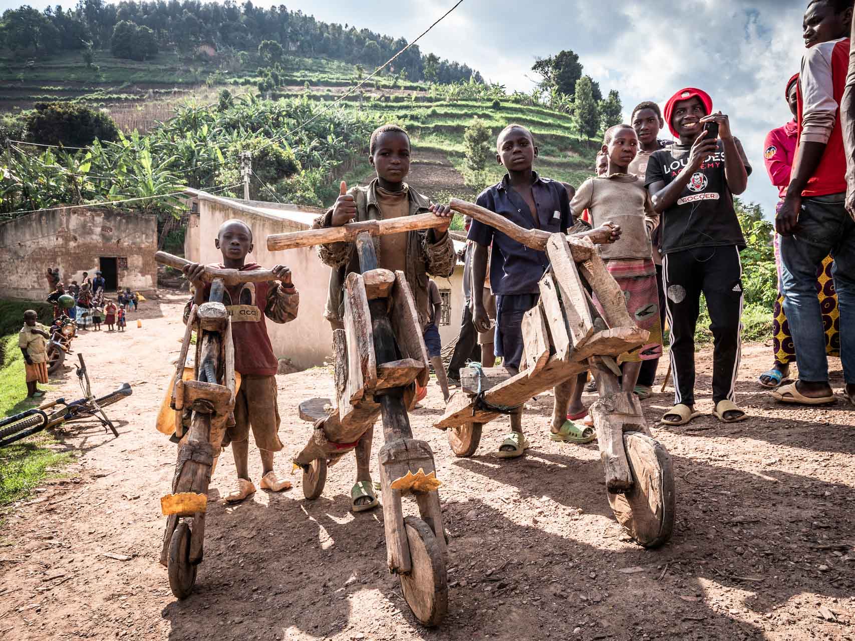 Devant moi, je peux entendre une autre foule bouillonnante de jeunes qui se jettent sur les autres mzungos (« étrangers ») blancs, Ludo May et Fred Horny. Un grondement d’excitation monte à chaque wheelie des mzungos. Il semble que tout le monde, qu’importe l’endroit où il se trouve, aime les clowns.