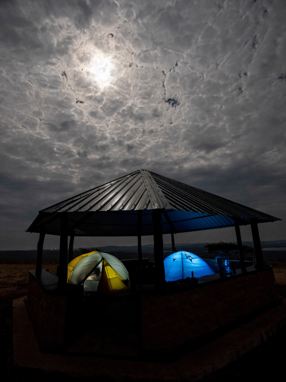 En regardant ces volcans Virunga, avec un seau me servant de douche à la main et des bières de la marque Virunga, je me tiens avec Ludo, Fred, Pelden Dorji et le guide VTT rwandais, Tyisenge Olivier, et je regarde les éclairs dessiner des formes coniques sur un ciel peint en violet.