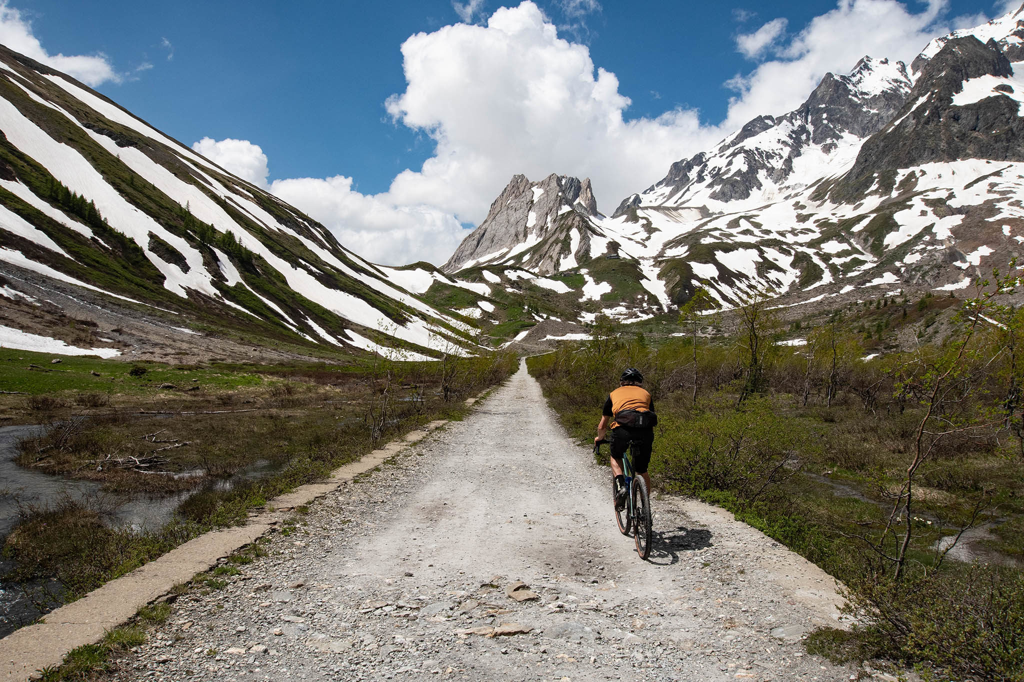Le lendemain, c’est le départ vers une autre vallée, plus encaissée encore où les 4.000 mètres dominent : bienvenue à Courmayeur, le village des alpinistes. L’itinéraire que nous allons suivre en gravel dans le Val Veny est sans aucun doute l’un des plus extraordinaires d’Europe avec, en toile de fond, le versant italien du mont Blanc.
