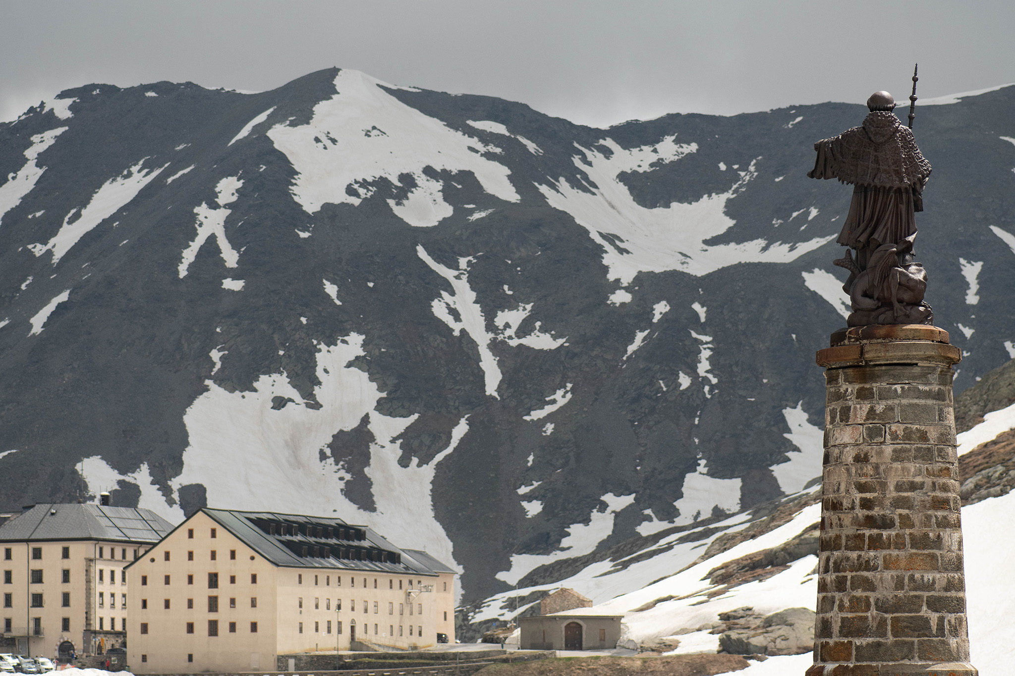 A l’approche du sommet, nous entrons dans la grande histoire alpine. Il y a 3.000 ans, les Celtes gravissaient le col pour honorer leur dieu Penn tandis que les Romains y vénéraient Jupiter, le dieu de la guerre. Un temple y fut érigé d’ailleurs sur la crête. Selon la légende, saint-Bernard aurait terrassé un dragon et aurait par la suite fondé l’hospice, en 1045. Aux siècles suivants, il offrait aux voyageurs le refuge en haute montagne.