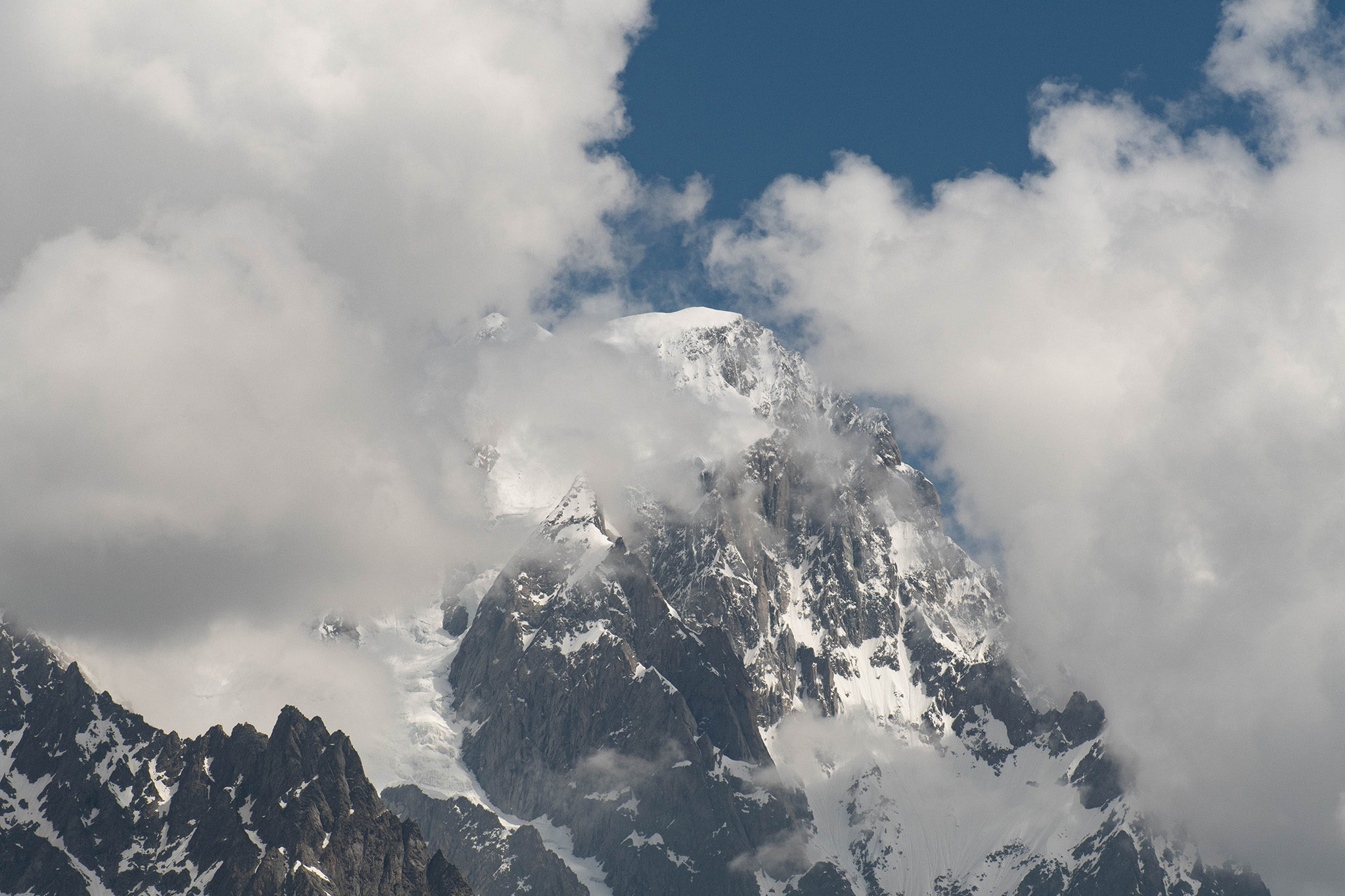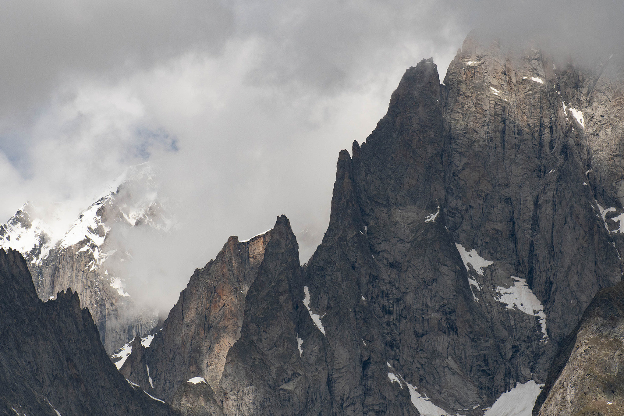 Nous entrons dans la plus austère des sept vallées du massif. Côté italien, le toit de l’Europe montre ses parois les plus élégantes et dévoile les séracs des glaciers du Miage, de La Lex-Blanche, du Freney et du Brouillard. Derrière ces monstres de glace se dressent les piliers de granit rendus célèbres par les ascensions de Walter Bonatti, sans doute l’un des meilleurs alpinistes de sa génération.