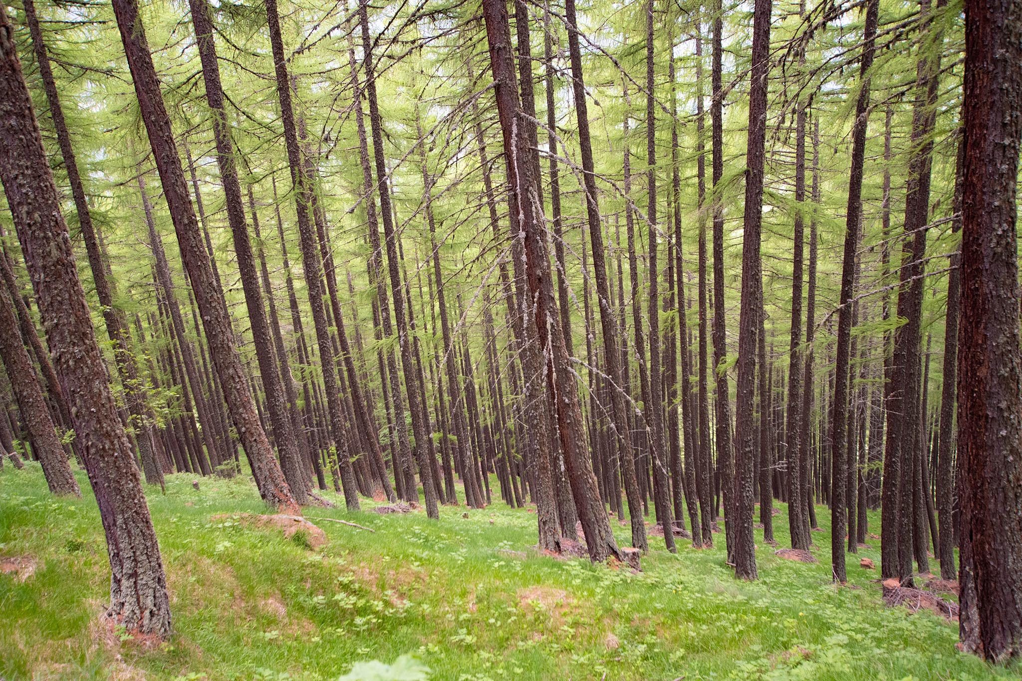 La descente nous rappelle que la route est un serpent de bitume, lisse et grisant. Peu après Saint-Rhémy-en-Bosse, un virage en épingle et nous voilà sur un chemin forestier : il va nous faire entrer au cœur de ce val d’Aoste. Passant la forêt, à l’orée apparaissent Eternod et Veyaz.