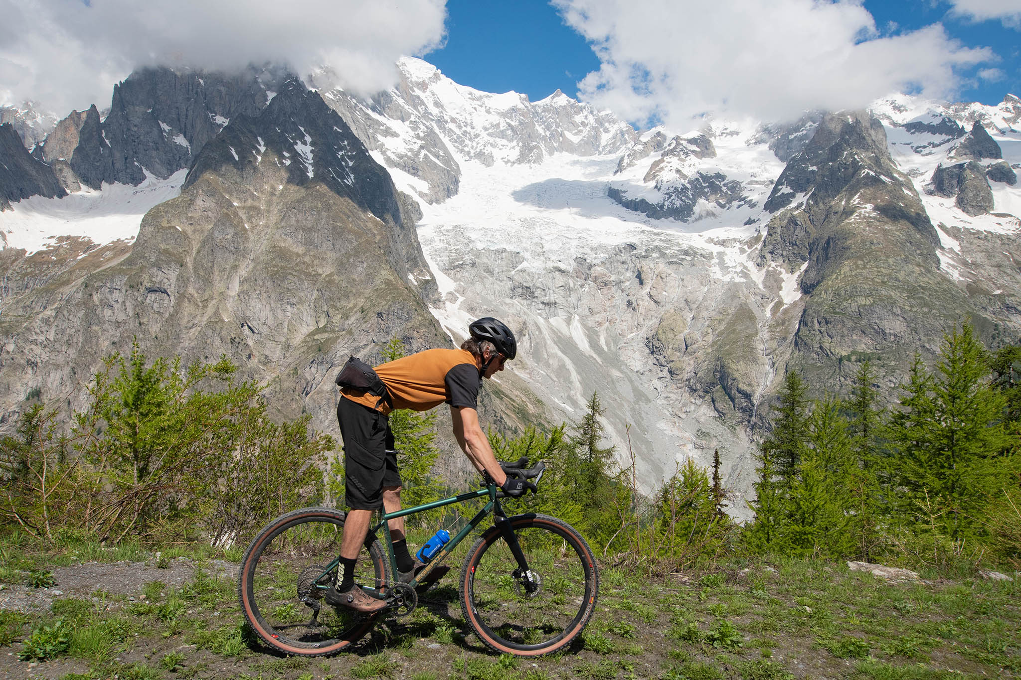 Le lendemain, c’est le départ vers une autre vallée, plus encaissée encore où les 4.000 mètres dominent : bienvenue à Courmayeur, le village des alpinistes. L’itinéraire que nous allons suivre en gravel dans le Val Veny est sans aucun doute l’un des plus extraordinaires d’Europe avec, en toile de fond, le versant italien du mont Blanc.