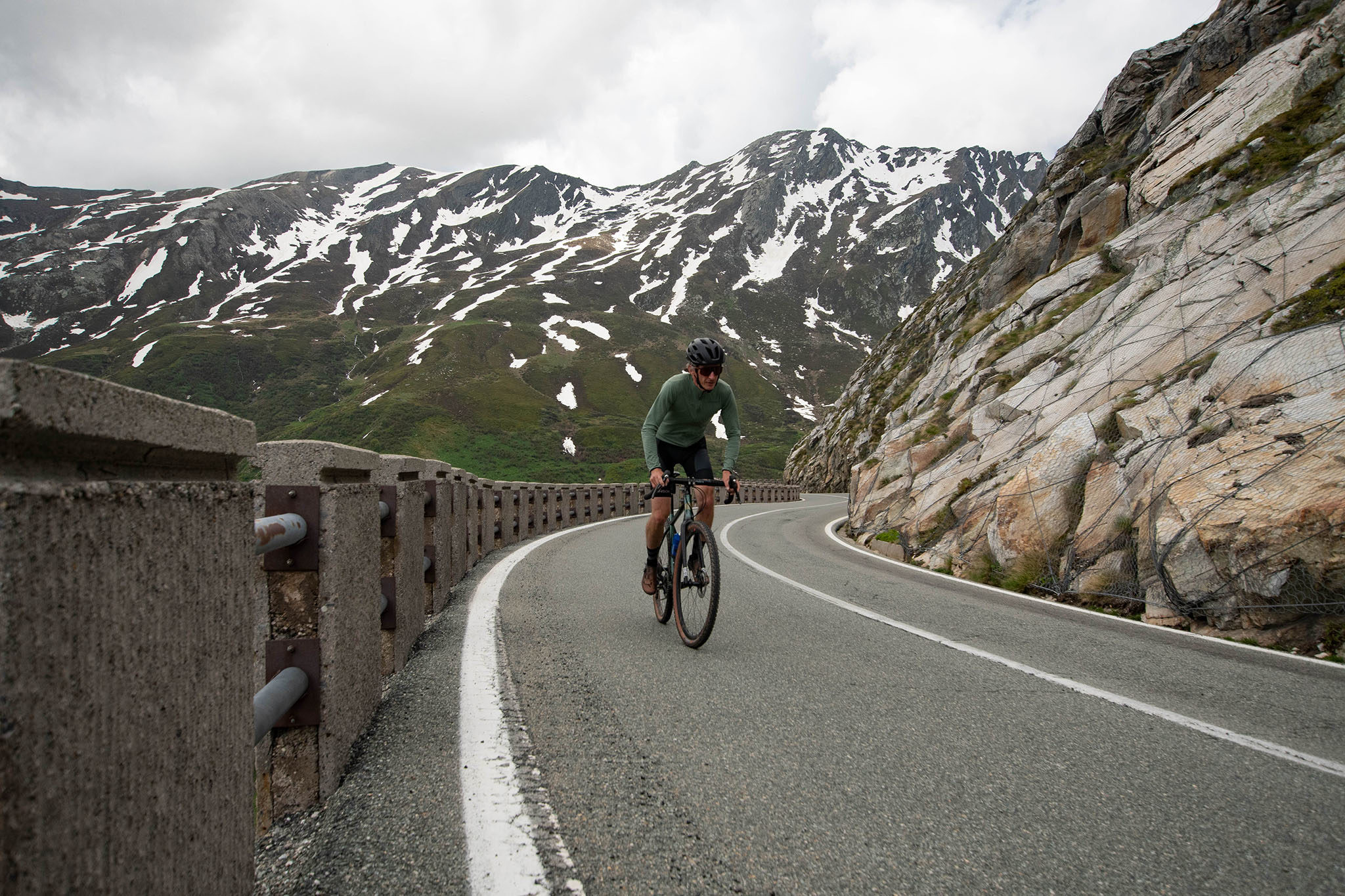 Nous sommes au bout de la vallée, au point ultime où peuvent mener nos gravel. Au-delà, le vélo n’a plus sa place. Après l’alpage, la haute altitude n’est jamais loin. De l’autre côté de la barrière rocheuse se situe le Valais. Jadis, les montagnards empruntaient les passages clés nous dominant afin de commercer. De nos jours, ils sont paradoxalement plus difficiles d’accès car la calotte glaciaire où l’on pouvait marcher et franchir la passe a maintenant disparu. Sur ces cols, il existait des cabanes servant de relais.