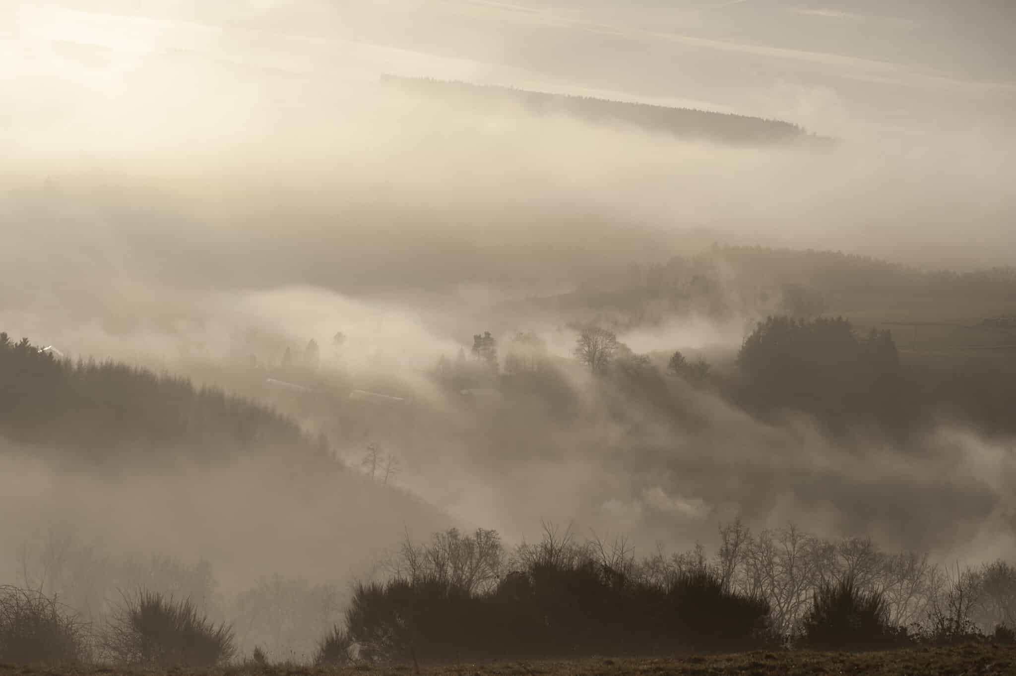 À la sortie du village, en suivant l’excellent balisage, nous quittons la route au bord de la rivière pour remonter un joli vallon. Protégée des vents dominants par son encaissement, la petite vallée est plus chaude. La côte est abrupte mais au sommet, quel plaisir de voir le paysage forestier se substituer à un large panorama.